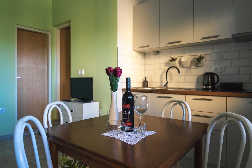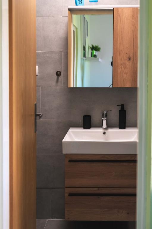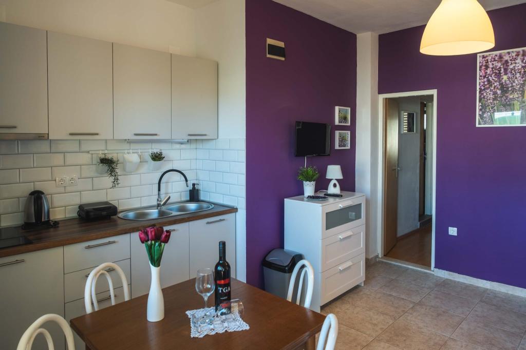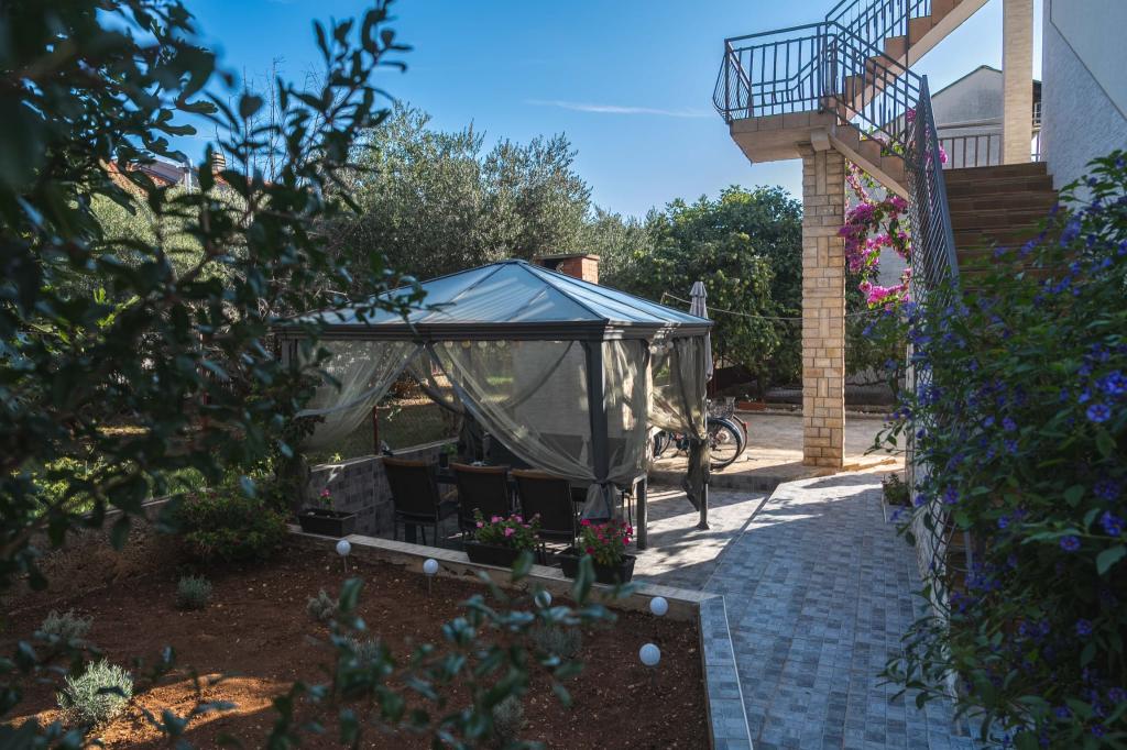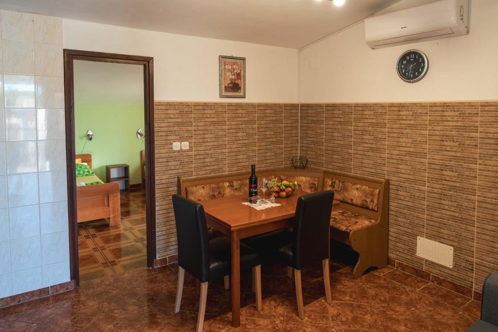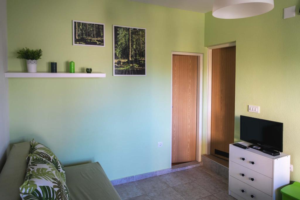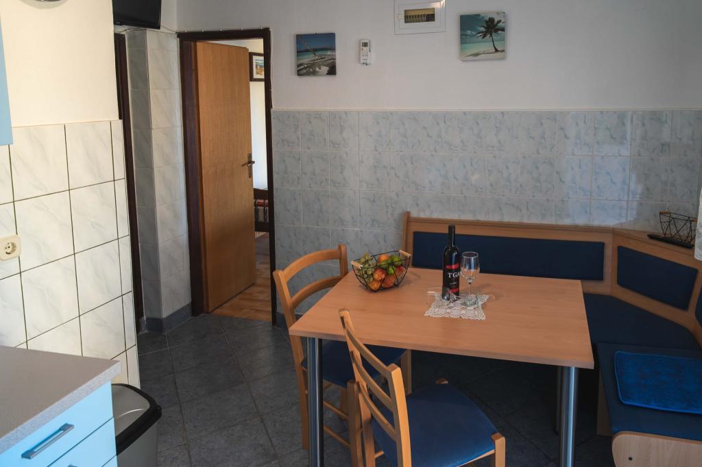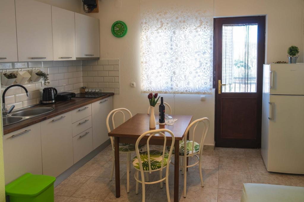 Vier APP (2 2) in einem ruhigen Teil von Pakostane. APP besteht aus einem Schlafzimmer, wo eine Doppel-und Drei Schrank. Das Wohnzimmer verfügt über ein Bett (200x140), Tisch mit vier Stühlen, und in einer Ecke der Küche. Die Küche besteht aus sudopra, kuhanhe Öfen mit Backofen und Kühlschrank. Apartment besitzt eine Klimaanlage und TV. Vor APP Terrasse mit einem Tisch und vier Stühlen für Ihre APP. APP ist auf der ersten Etage eines Privathauses. Zwei-Zimmer-Wohnungen bestehen aus zwei Schlafzimmern, Küche, Esszimmer und Bad mit Dusche. Die Apartments verfügen über eine große Terrasse mit Meerblick, Klimaanlage. TV. In den Hinterhof Grill Kinderschaukel und Parkplatz im eingezäunten Bereich.