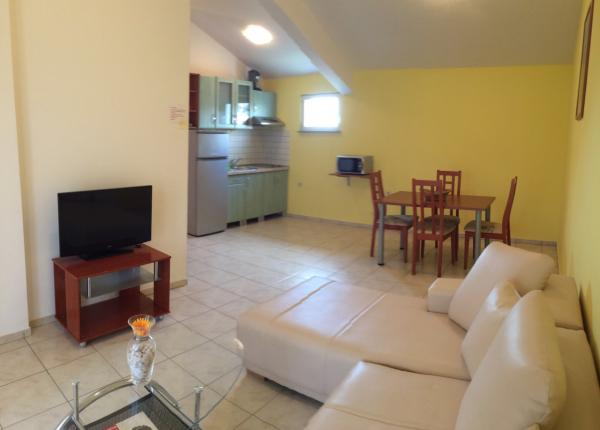 Modern ausgestattete Apartments in einem ruhigen Teil von Pakoštane, in der Nähe aller Annehmlichkeiten. Ein großer Garten mit Swimmingpool und anderen Annehmlichkeiten machen diesen Ort ideal für einen Familienurlaub. Alle Apartments sind gleich ausgestattet und unterscheiden sich nur in der Farbe.