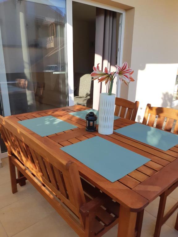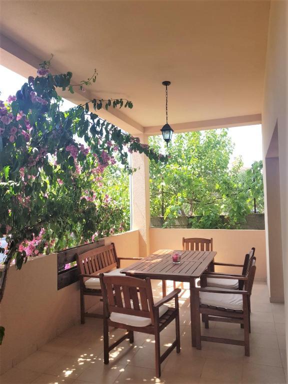 Die überdachte Terrasse bietet ausreichend Platz für Familienfeiern und entspannte Stunden im Alltag. Im Innenhof des Hauses befindet sich ein privater Parkplatz, der den Gästen kostenfrei zur Verfügung steht.