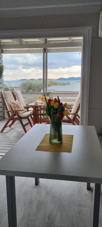 Die Mobilheime befinden sich im Zentrum von Pakoštane, direkt am Hauptstrand mit Meerblick. Jedes Mobilheim verfügt über zwei Schlafzimmer, ein Esszimmer, eine Küche, ein WC und eine große Terrasse (5). Ein Grill steht allen Gästen zur Verfügung. Ein Parkplatz ist ebenfalls vorhanden. Haustiere sind willkommen, es wird jedoch ein Aufpreis von 7 € pro Tier und Nacht erhoben. Wir bieten einen eigenen Bootsanleger und einen Anhängerstellplatz, die gegen Gebühr genutzt werden können.