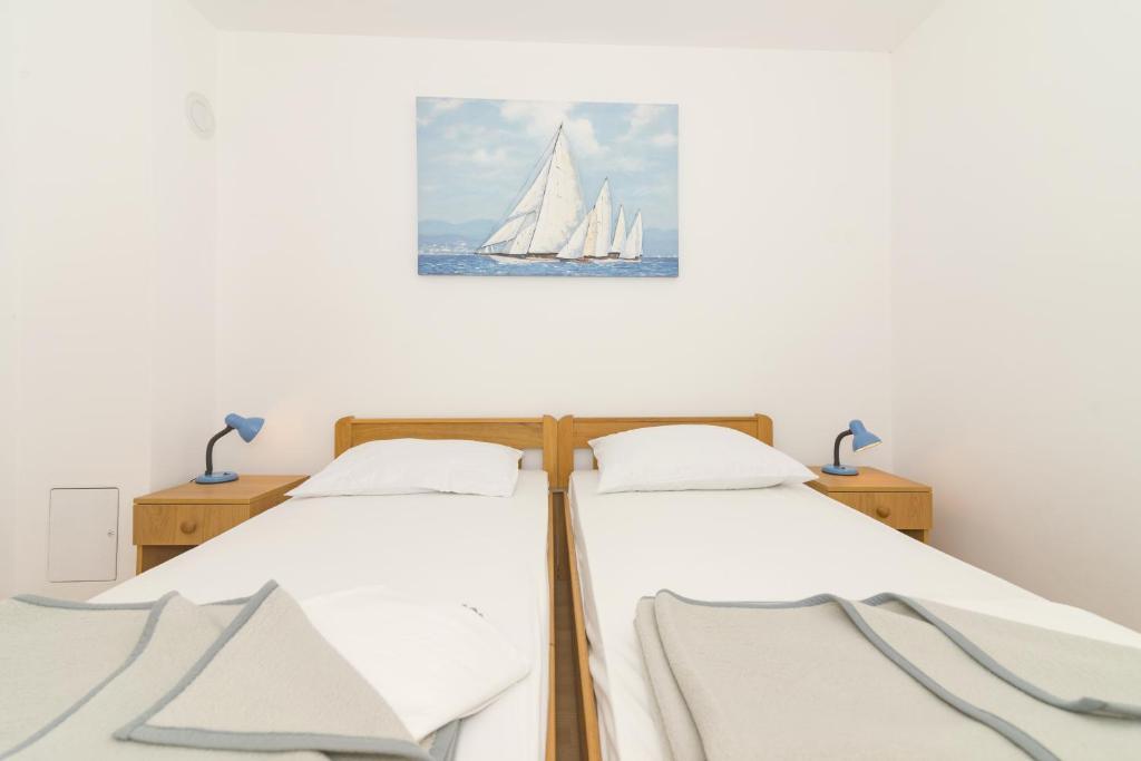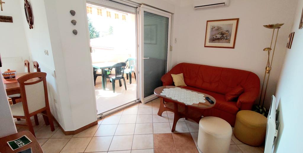 Die Wohnung befindet sich in einem Wohnhaus im 1. Obergeschoss. Von der Terrasse aus haben Sie einen Blick auf das Meer und den Strand, der nur wenige Gehminuten von der Unterkunft entfernt ist. Die Wohnung besteht aus einem Flur, der zum Wohnzimmer und zur Küche führt. Im Wohnzimmer befindet sich ein Ausziehbett. Das Wohnzimmer verfügt über einen Ausgang zur Terrasse. Das Schlafzimmer mit Doppelbett liegt auf der Nordseite der Wohnung mit Blick auf den Parkplatz, ist nicht den ganzen Tag der Sonne ausgesetzt und daher angenehm zum Verweilen. Das Badezimmer ist mit einer Dusche ausgestattet und verfügt über eine Waschmaschine. Pirovac ist eine kleine Stadt, das Zentrum ist nur wenige Gehminuten entfernt, Sie müssen also kein Auto benutzen, es gibt kostenlose Parkplätze vor dem Gebäude.