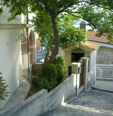 Wir bieten Wohnung 6 +2 in Schach Munoz, Omis, darunter zwei Zimmer mit Doppelbetten und ein Schlafzimmer mit Doppelbett und einem Wohnzimmer mit ausziehbarer Schlafcouch für die Möglichkeit von zwei Personen, zwei Küchen und zwei Toiletten. Die Wohnung ist ca. 200m vom Meer und den Sand-und Kiesstrände. Vor der Wohnung befindet sich eine Terrasse mit Garten. Ebenfalls erhältlich sind drei Parkplätze.