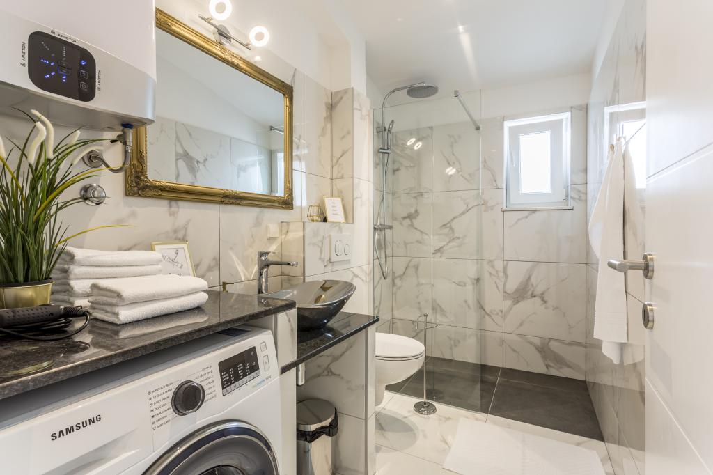 Das SeaHouse HAWK ist eine moderne und funktional ausgestattete Ferienwohnung in Pisak, einem kleinen, charmanten Ort an der Adriaküste! Diese Unterkunft ist die perfekte Wahl für Paare, Familien oder Freunde, die das kristallklare Meer, den wunderschönen Strand und die entspannte Atmosphäre Dalmatiens genießen möchten. Lage und Umgebung: Die Wohnung liegt nur ca. 120 m vom Strand entfernt und bietet somit direkten Zugang zum Meer. Alle Annehmlichkeiten – Restaurants, Bars und Geschäfte – sind bequem zu Fuß erreichbar. Pisak ist ein wunderschöner Touristenort, bekannt für sein kristallklares Meer, die schönen Kiesstrände und die entspannte Atmosphäre – ideal für einen Urlaub. Ausstattung: - Geräumige Wohnung mit insgesamt 2 Schlafzimmern und einer Kapazität von bis zu 6 Personen (2 Doppelbetten + Schlafsofa). - Voll ausgestattete Küche und Wohnzimmer für einen komfortablen Aufenthalt. - Separates WC mit Waschmaschine. - 2 Klimaanlagen (kostenlos) und Deckenventilatoren in den Zimmern. - Große 35 m² große Terrasse, ideal für den Morgenkaffee oder gesellige Abende. - Kostenloser Privatparkplatz.