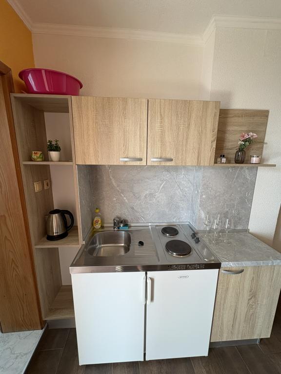 Makarska Riviera, Podaca. Sechs Studios und drei Apartments in Podaca, nur 70 Schritte vom Meer entfernt. Barrierefreier Strandzugang (200 m). Stadtzentrum, Einkaufsmöglichkeiten, Post, Kinderspielplatz und Bushaltestelle sind ebenfalls nur 200 m entfernt. Kostenloses WLAN und Klimaanlage in jedem Apartment.