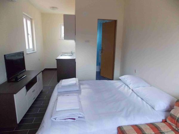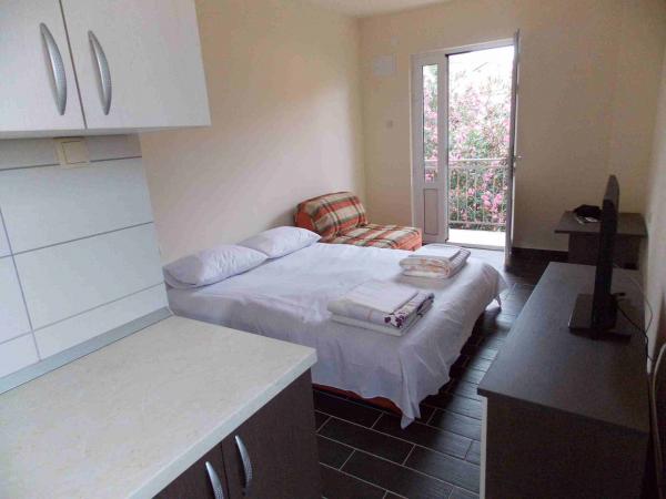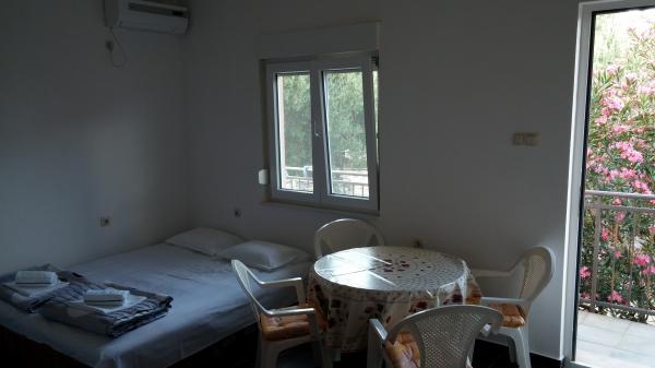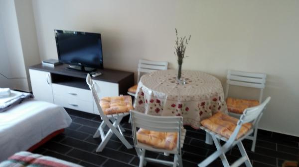 Die Wohnungen befinden sich im Zentrum der Daten entfernt. Sie sind 100 m vom Meer und schönen Stränden. Shop, Post, Sportplatz, Kirche, Bushaltestelle und den Austausch in einem Umkreis von 40 m von der Wohnung. Die Anlage besteht aus vier Suiten, zwei separate Wohnungen für zwei Personen mit Zusatzbett, ein Appartement für zwei Personen mit drei Zustellbetten und eine große Wohnung für vier Personen und drei Zustellbetten. Die Apartments sind neu und mit Klimaanlage, TV, Bad und Küche ausgestattet. Die Apartments verfügen über die Verwendung von zwei Terrassen und ein Innenhof mit Grill in den Schatten. Gäste Parkplätze sind vorhanden und der Preis beinhaltet die Kurtaxe. Bettwäsche und Handtücher sind inklusive und werden alle sieben Tage gewechselt.
