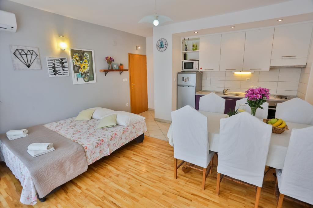 Herzlich Willkommen! Kirsch Apartments befinden sich in Podstrana von einem kleinen dalmatinischen Stadt Omis, nur 10 km von der Altstadt von Split (Diokletian-Palast, unter dem Schutz der UNESCO) und 8 km dem Fluss Cetina, wo Sie zu Fuß zu genießen, das Führen eines Bootes, Rafting und andere Abenteuer-Aktivitäten. Die Bushaltestelle ist 100 m vom Haus entfernt. Kies- und Sandstrand ist nur 50 Meter vom Haus entfernt. Die Apartments sind komplett eingerichtet und neu. Ausstattung: TV, Satellit, Klimaanlage, kostenlosem Wi-Fi, Waschmaschine, Parkplatz, Terrasse, Grill, Sonnenschirme, Liegestühle. Alle Wohnungen verfügen über einen Balkon mit Blick auf das Meer. Einkaufsgeschäft 100 m, Restaurant 200 m vom Haus, ATM 500m.
