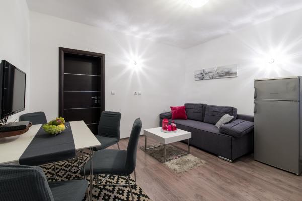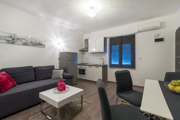 Komplett neu eingerichtete Studio-und Ein-Zimmer-Wohnung Nana, sind in einem Privathaus in Podstrana. Die Nähe zum Meer, Strand, Bäcker, Geschäften und Restaurants. Apartments können als separate Einheiten oder als Ganzes gemietet werden. Ideal für Paare, Familien, Gruppen von Freunden.