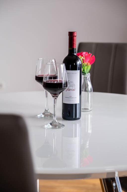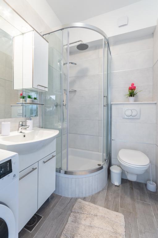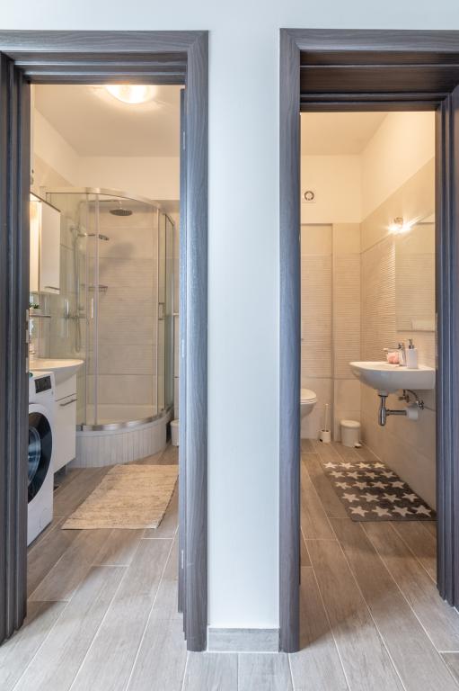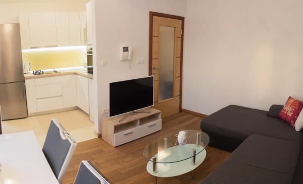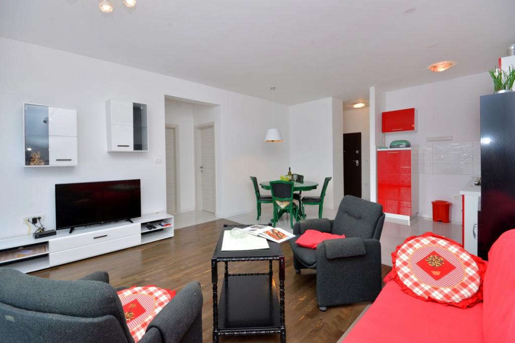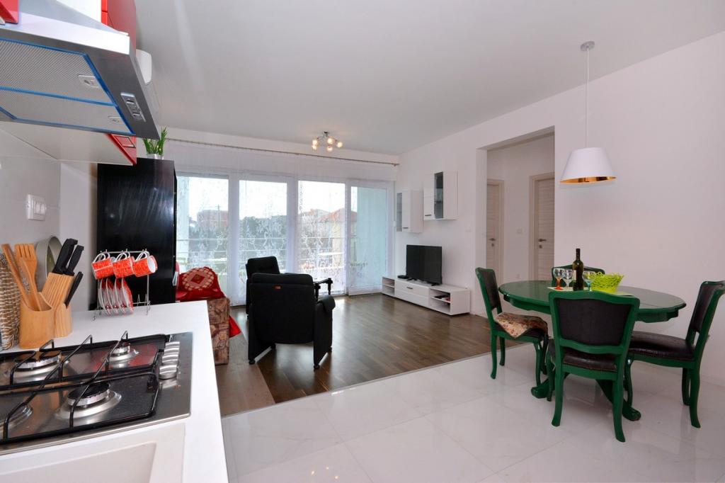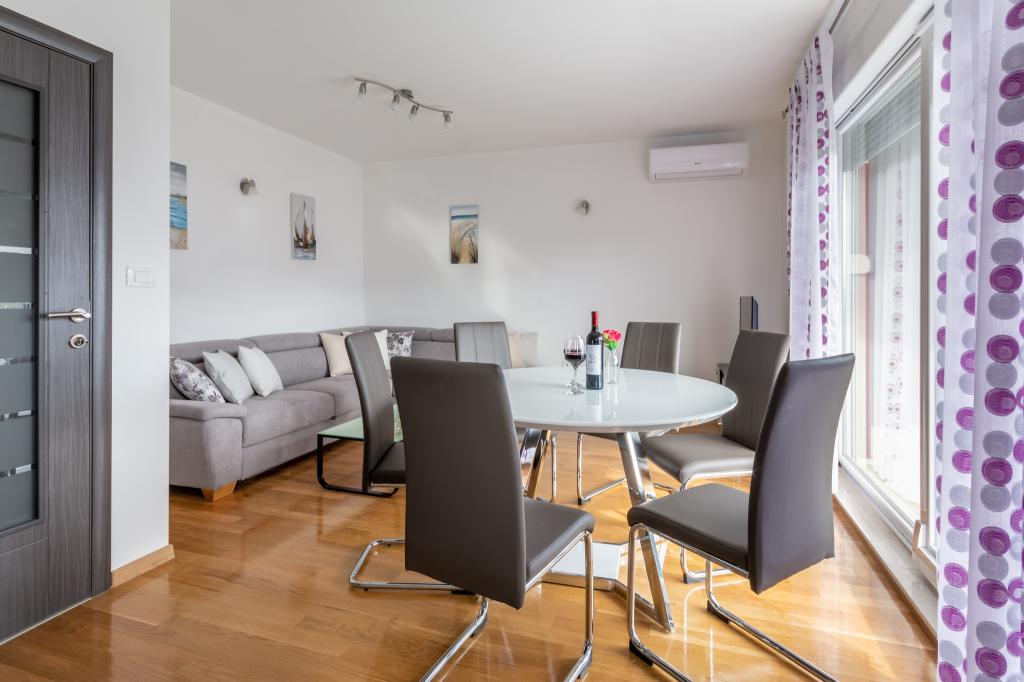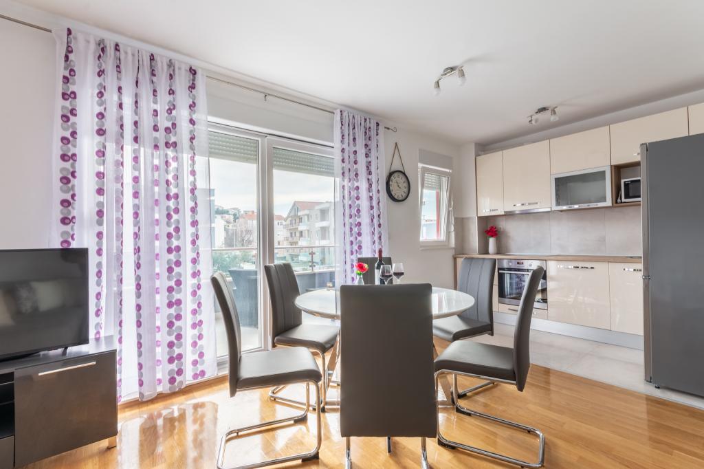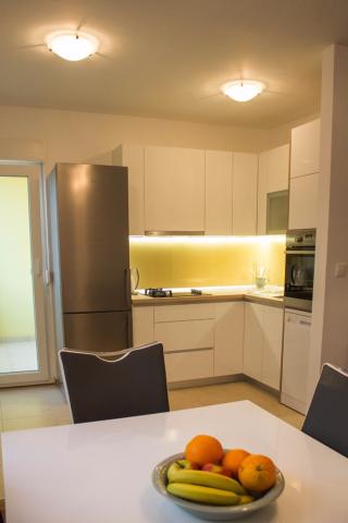Vollmoderne, luxuriös eingerichtete Wohnung in einem ruhigen Teil von Podstrana. Schöne Wohnung befindet sich in einem neuen Gebäude mit 2 Schlafzimmern, Wohnzimmer, Küche, Terrasse, TV-WLAN, Waschmaschine, Klimaanlage, nur 70 m vom Strand entfernt, privater Parkplatz. In der Nähe gibt es eine Bushaltestelle, einen Markt, Supermärkte, Bars, Restaurants, Fast Food und ähnliches. Podstrana liegt in der Nähe der Stadt Split, nur 10 km entfernt.