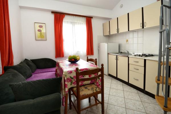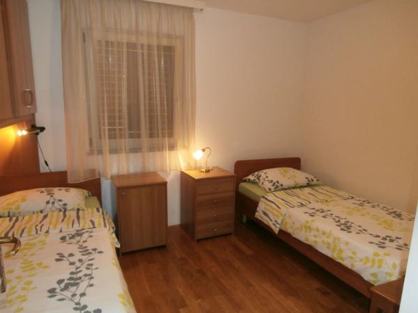 Das Apartment MIKI 1 ist ein voll ausgestattetes Apartment im 1. Stock eines Einfamilienhauses. Es besteht aus zwei Schlafzimmern, einer Küche, einem Badezimmer und einem Wohnzimmer mit einem 160 cm breiten Schlafsofa. Die Wohnung verfügt über zwei Balkone. Das Apartment MIKI 2 befindet sich im Erdgeschoss und im 1. Stock. Im Erdgeschoss gibt es eine Küche mit Wohnzimmer, ein Badezimmer und ein Schlafzimmer mit Doppelbett und französischem Bett. Im ersten Stock ist ein Dreibettzimmer. Haustiere sind erlaubt, der Preis beträgt 8 Eur pro Tag. Die Klimaanlage kostet zusätzlich 8 EUR pro Tag. Die Anlage ist 7 Gehminuten vom Strand und 10 Minuten vom Zentrum entfernt. Es liegt in einem sehr ruhigen Teil der Stadt. Das Apartment MIKI 3 befindet sich in der Bruno Valenti 19B Straße im Erdgeschoss, sehr nahe am Strand, nur wenige Gehminuten entfernt. Die Stadt ist 10 Gehminuten entfernt. Es verfügt über ein Schlafzimmer mit Doppelbett und eines mit zwei getrennten Betten, ein Wohnzimmer mit Küche, ein Badezimmer, eine Terrasse und ein eigenes Bad. Parkplatz. Es hat einen speziellen Abstellraum für Fahrräder usw. Es liegt in einer sehr ruhigen Straße. Zugang für Behinderte ist möglich. Klima 8 Eur pro Tag