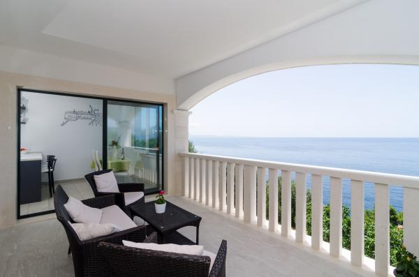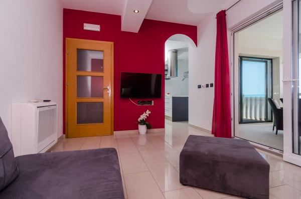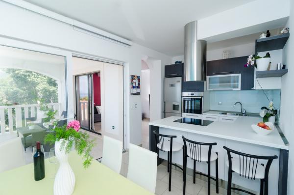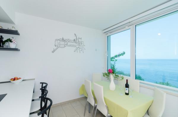 Die Wohnungen befinden sich in einer kleinen, ruhigen Stadt und vom Zentrum 200 m. Sie haben einen schönen Meerblick von der Terrasse. Parken ist direkt vor dem Haus.