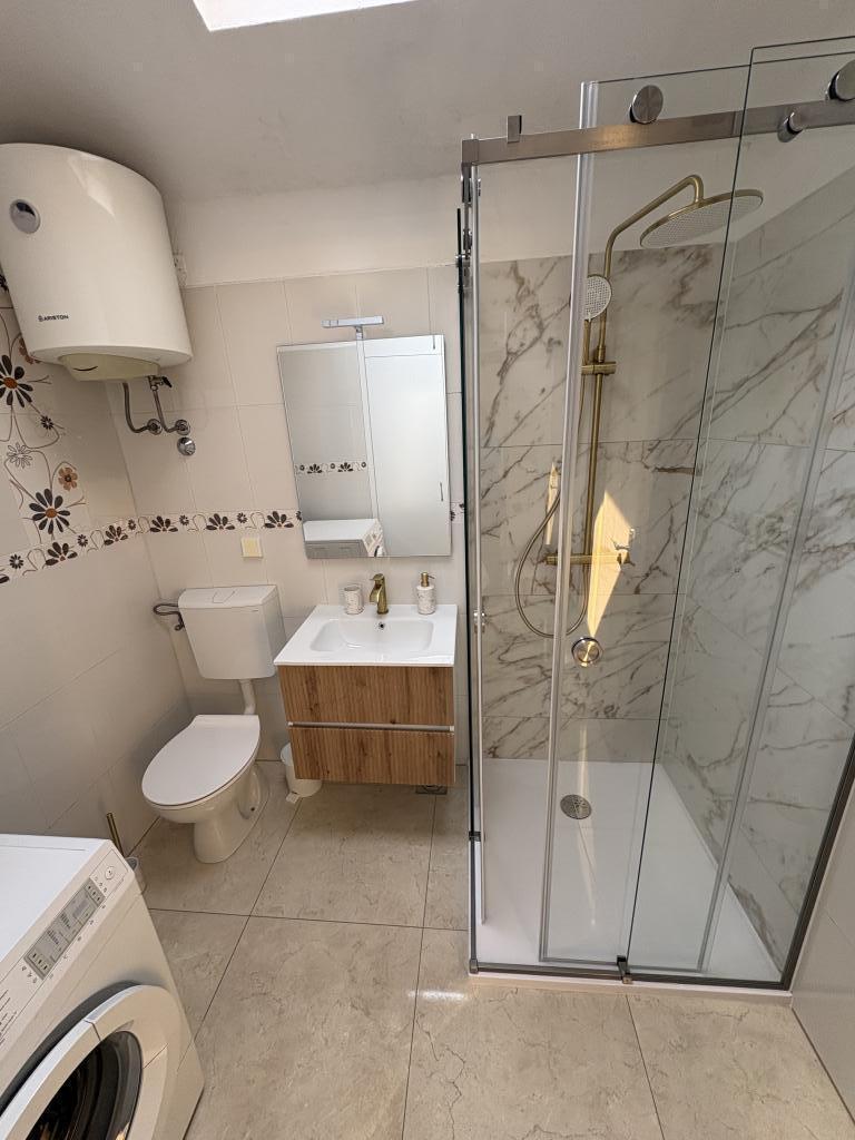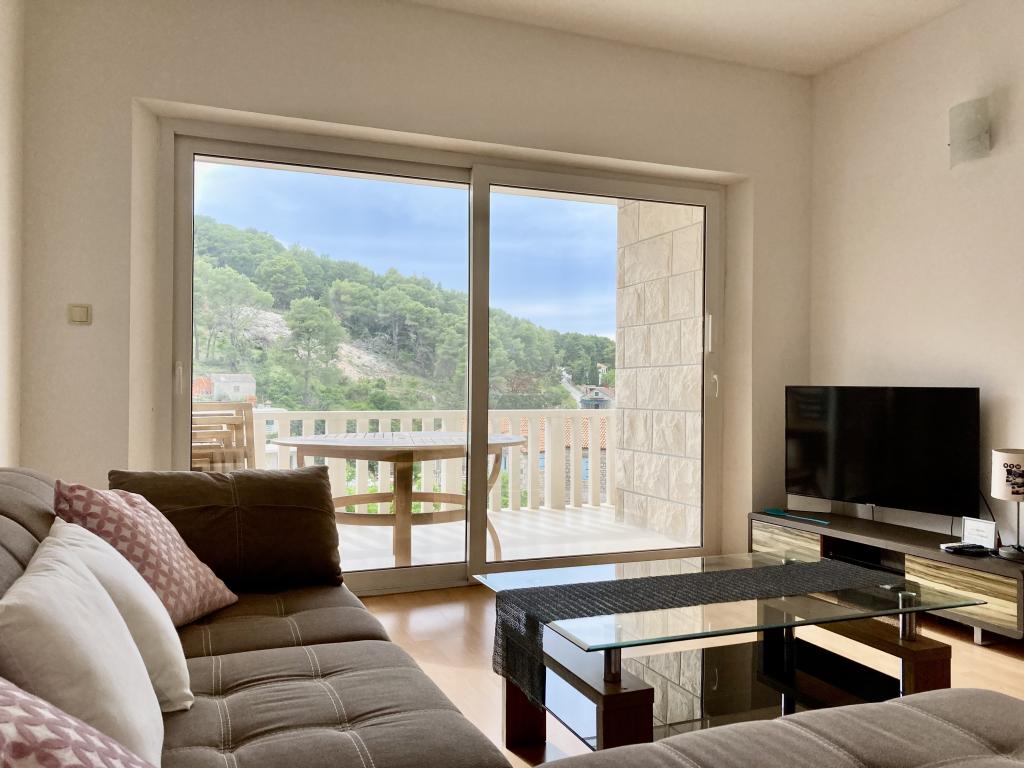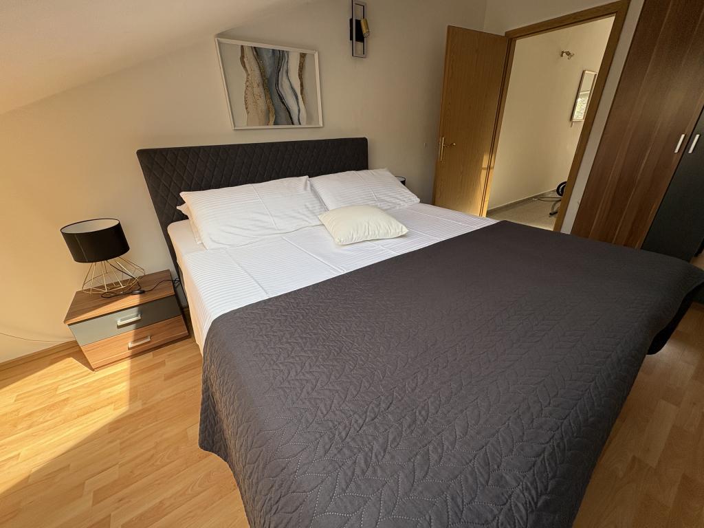 Ferienwohnung 6 für 2 Personen mit einer schönen Aussicht auf das Meer, sonnig und sehr geräumig und mit drei Schlafzimmer mit Doppelbetten, Wohnzimmer mit Doppelbett, zwei Bäder, Massagedusche, zwei Klimaanlagen, Induktionsherd, Spülmaschine, Waschmaschine , Kaffeemaschine, Wasserkocher, Mikrowelle und Kühlschrank. Terrasse mit Kamin, ein Grillplatz und eine Terrasse mit Blick aufs Meer, die getrennte Tische und Stühle haben. TV ist im Wohnzimmer und WLAN-Internetzugang ist vorhanden. Es ist ausgestattet mit Geschirr für die Zubereitung und Servieren von Speisen und Getränken und Besteck in ausreichender Menge. Es befindet sich im ersten Stock des Hauses in der Stadtmitte entfernt. Es liegt direkt am Meer (40 m) Geschäft (50 m), zahlreiche Strände, Restaurants, Bars und andere gastronomische Betriebe befinden. Der Preis beinhaltet einen Parkplatz vor dem Haus, die Verwendung des Bootsanlegestellen, Bettwäsche und Handtücher, Endreinigung und die Nutzung von Kinderbett bei Bedarf