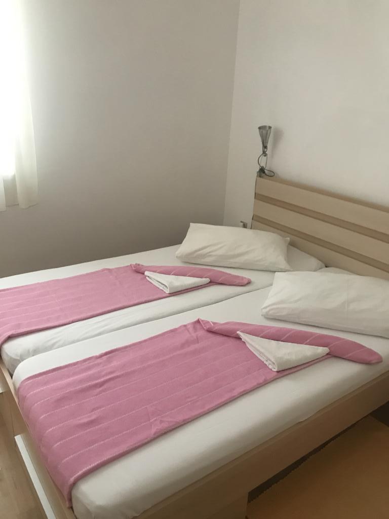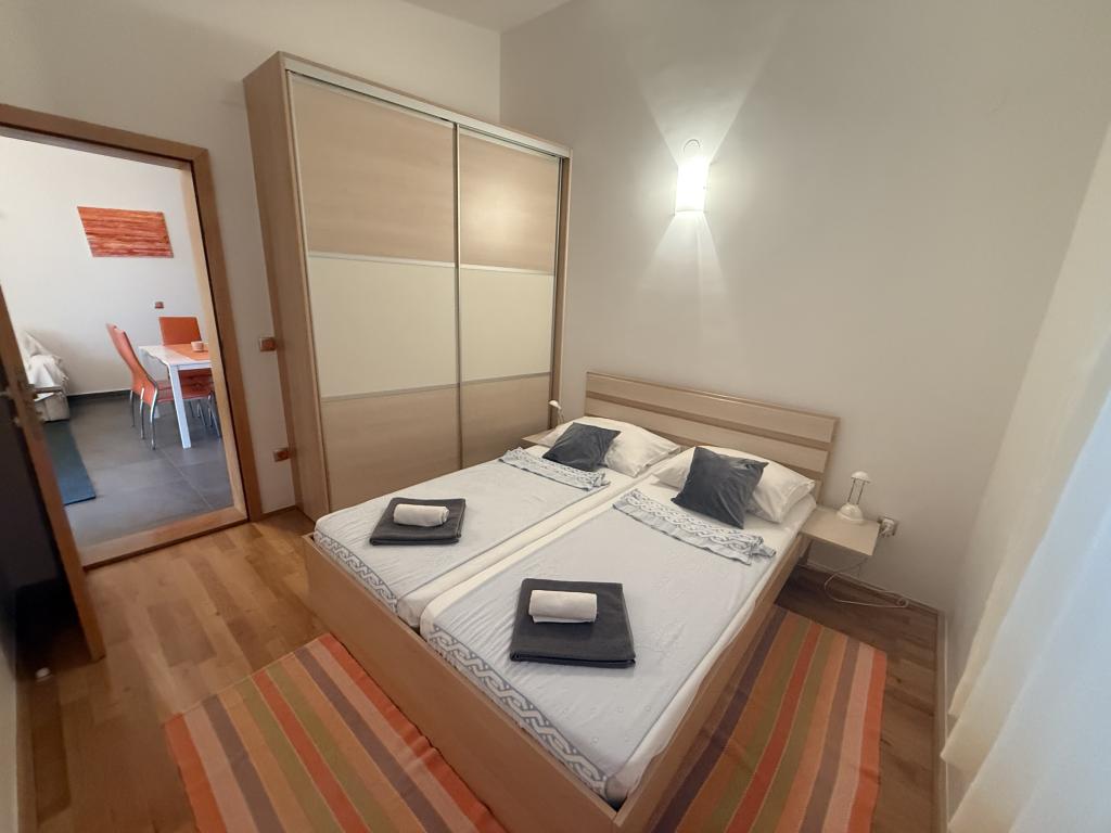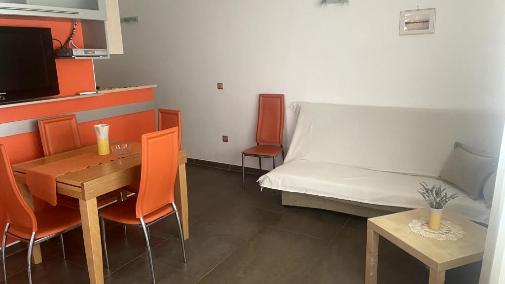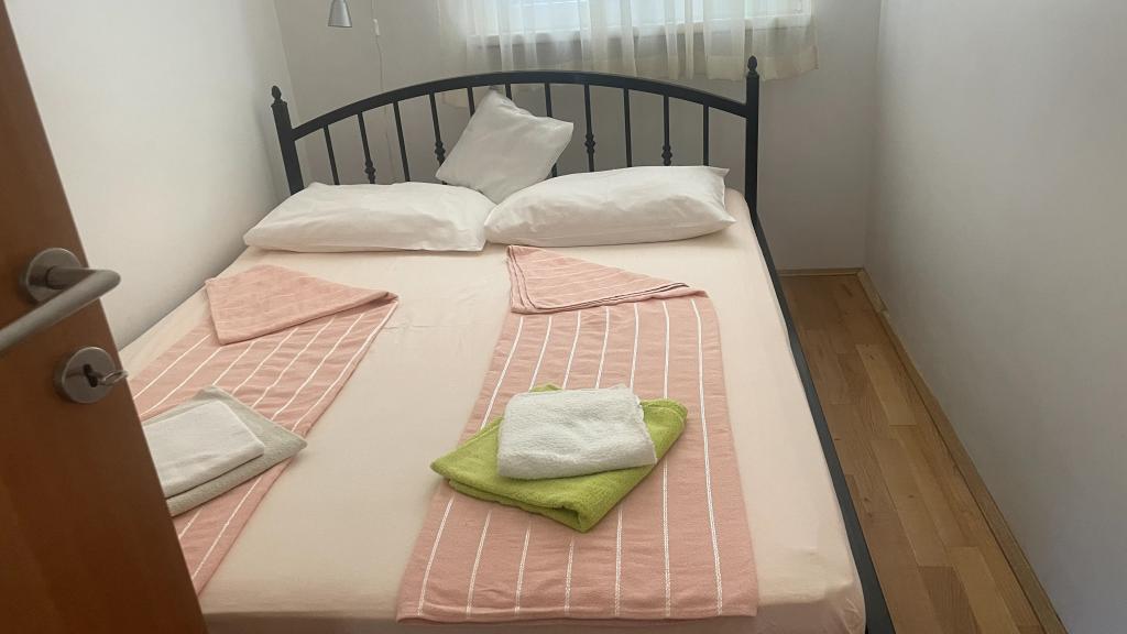 Ferienwohnungen ideal für Familienurlaube. Wir bieten drei nahezu identische Ferienwohnungen, die jeweils für einen komfortablen Familienurlaub ausgestattet sind. Jede Wohnung besteht aus: Wohnzimmer mit Essbereich und Küche, zwei Schlafzimmern: einem Elternschlafzimmer (160 x 200 cm) und einem Kinderzimmer (140 x 200 cm), einem Wohnzimmer mit Sofa. Die Küche ist mit einem Standard-Backofen mit Induktionskochfeld, einem kleinen Kühlschrank, einem Wasserkocher und einer Filterkaffeemaschine sowie dem nötigen Geschirr ausgestattet. Das Badezimmer verfügt über eine Duschkabine und ist klein, aber funktional. Jede Wohnung hat eine ruhige Ecke in Form einer Loggia mit Schiebewand. Alle Fenster sind mit Moskitonetzen versehen. Ein Grillplatz mit Tisch und Stühlen lädt zum Verweilen im Freien ein. Unser Hygienestandard ist sehr hoch und uns besonders wichtig. Im Preis inbegriffen sind: Klimaanlage, Kurtaxe, Sat-TV (kein Smart-TV), Geschirr und Bettwäsche sowie ein Handtuch pro Gast. Haustiere sind nach Absprache und gegen einen Aufpreis erlaubt.