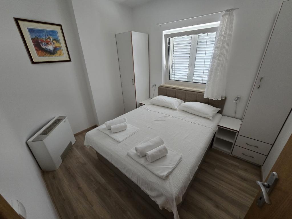 Die Apartments wurden 2004 gebaut und sind modern eingerichtet. Wir bieten zwei Vier-Bett-Appartements. Jede Wohnung ist ausgestattet mit Klimaanlage, Telefon, TV, Sat-Receiver, Radio mit CD, Fön, Kaffeemaschine (Nespresso) und Safe (Tresor) für Ihre persönlichen Wertsachen und Wertsachen. Jede Wohnung hat eine eigene Terrasse mit Gartenmöbeln und Sonnenschirm, und jede Wohnung hat einen Parkplatz. Kostenloser Wi-Fi-Internetzugang steht den Gästen in der gesamten Anlage zur Verfügung. Im Hofteil des Gebäudes gibt es die Möglichkeit, einen Grill und eine Gartenlaube, ein Schwimmbad zu nutzen, und die Gäste können auch Fahrräder benutzen. Durch den großen und gepflegten Garten eignen sich die Apartments besonders für Familien mit Kindern.