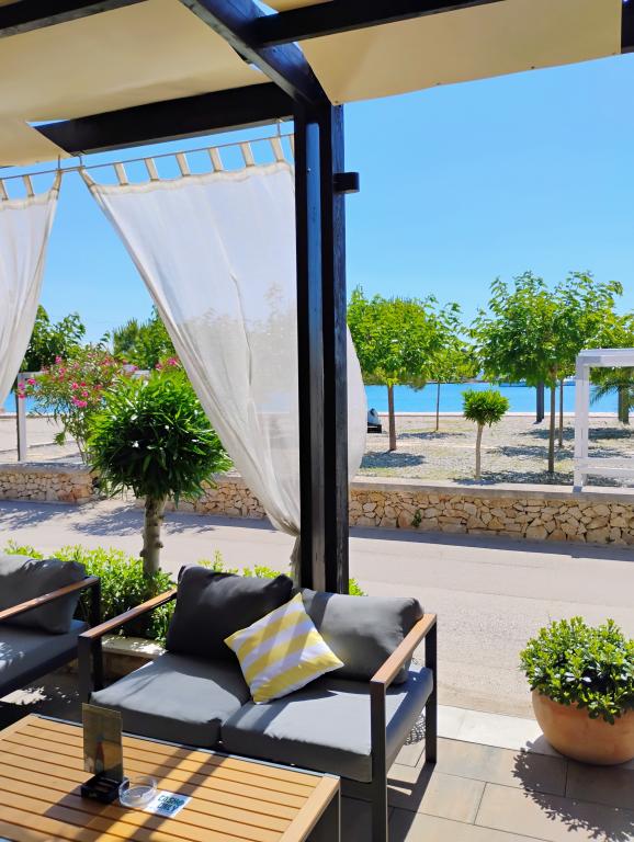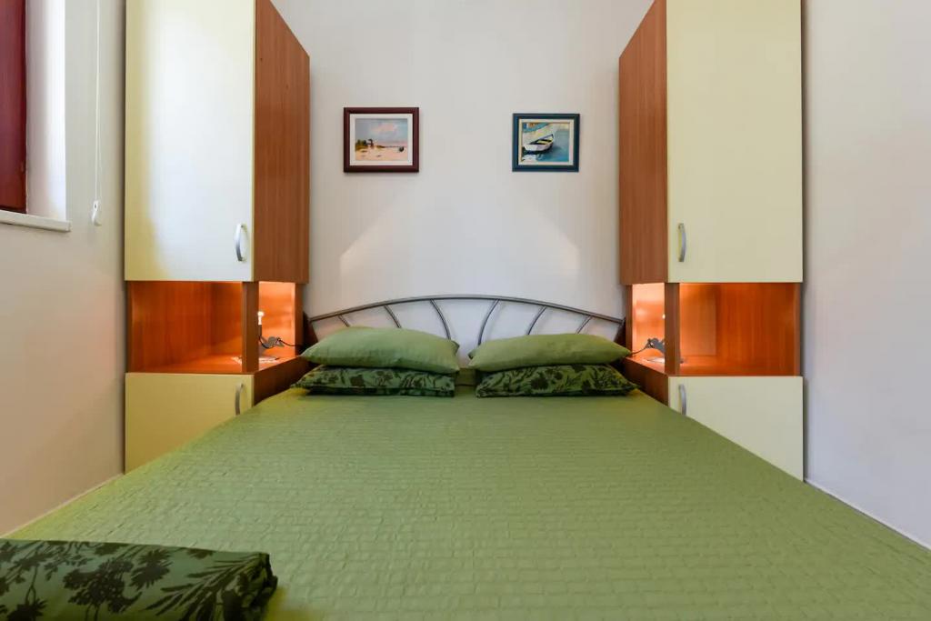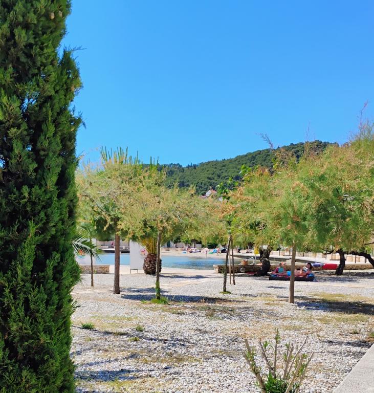 Neue, schön eingerichtete Apartments im Erdgeschoss eines Familienhauses, nur wenige Schritte vom wunderschönen Strand Jaz entfernt, der die Blaue Flagge trägt und über ein Volleyballfeld verfügt. In unmittelbarer Nähe befinden sich Restaurants und Cafés, ein Kinderspielplatz ist nur etwa zwanzig Meter entfernt. Jede Wohnung verfügt über eine eigene große Terrasse mit Meerblick. Die Apartments verfügen über zwei Schlafzimmer, eine ausgestattete Küche, ein Badezimmer, ein Wohnzimmer, einen Außengrill und einen privaten Parkplatz. Ein Willkommensgeschenk ist im Preis inbegriffen.