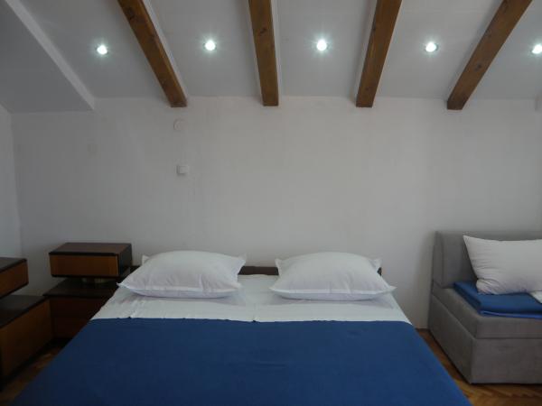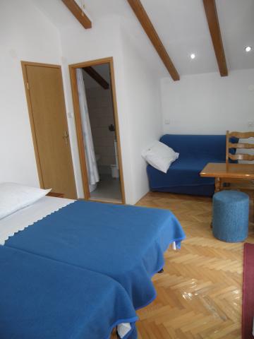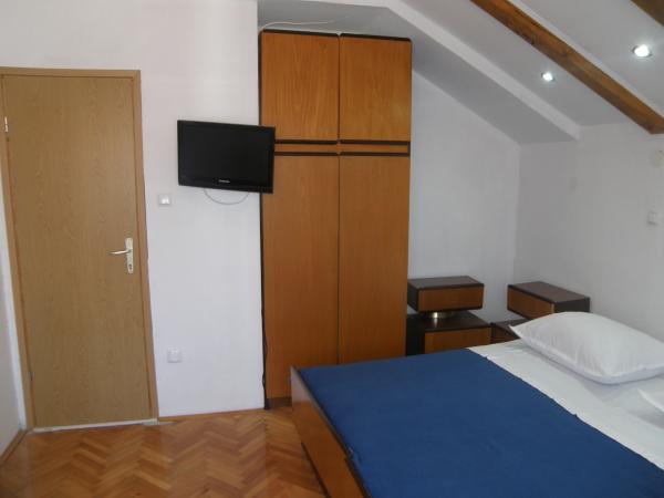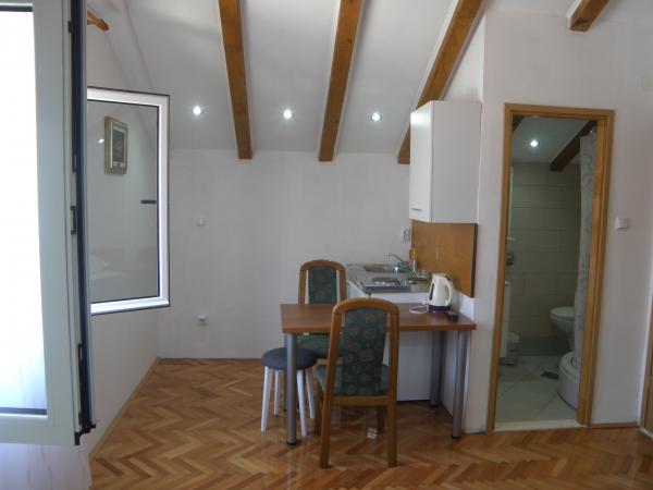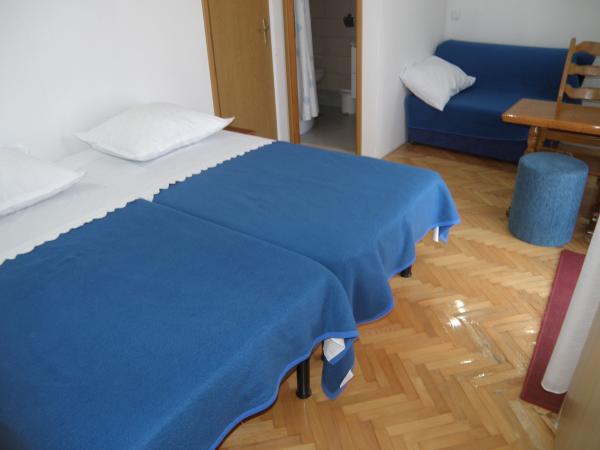 Schöne und moderne Wohnung für vier oder fünf im Zentrum von Primosten mit Parkplatz für ein Auto, nur wenige Minuten vom Strand entfernt, nur wenige Minuten zu den Hauptplatz, Märkte, Geschäfte. Komfortable, klimatisierte, können Sie kostenfreies WLAN nutzen. Es besteht aus zwei Etagen. An der Spitze sind zwei Schlafzimmer und ein kleines Bad. In einem Zimmer ist Doppelbett und ein Zweibettzimmer, beide Schlafzimmer führen auf einen kleinen Balkon. Im unteren Teil der Küche, Esszimmer, ein Sofa und eine Veranda. Das Hotel liegt in einem ruhigen Teil der Stadt, und alles ist an Ihren Fingerspitzen - perfekt für einen idealen Urlaub. Studio Thomas auf Maulbeer Put 19, in einem ruhigen Altstadt. Doppelzimmer mit einem Zusatzbett ist mit Kochecke und Bad bereichert. Es ist mit TV und Klimaanlage ausgestattet ist, in der Halle und seine hervorragende Dämmung kühlt den Raum in einer sehr kurzen Zeit. Das Parken ist in den Gassen von Gregor von Nin, direkt neben dem Park.