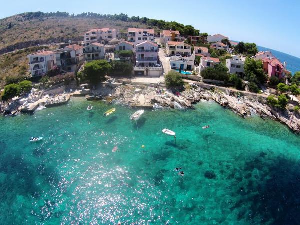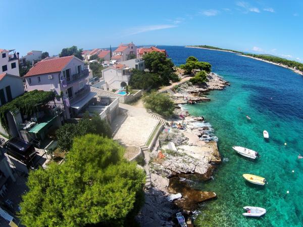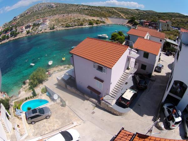 Atlas Apartments befinden sich in einem Privathaus in der Nähe des ruhigen Ort Primosten Es entfernt. Die Wohnungen sind neben dem Meer. Die Apartments sind neu gebaut 2014. Jahr und nie vermietet. Es gibt zwei moderne und klimatisierte Apartments. Die Apartments verfügen über: Küche, Wohnzimmer mit einem Schlafsofa, ein Badezimmer und zwei Schlafzimmer mit insgesamt sechs Betten. Jede Wohnung verfügt über einen Parkplatz und eine Terrasse mit einem herrlichen Blick auf das Meer.