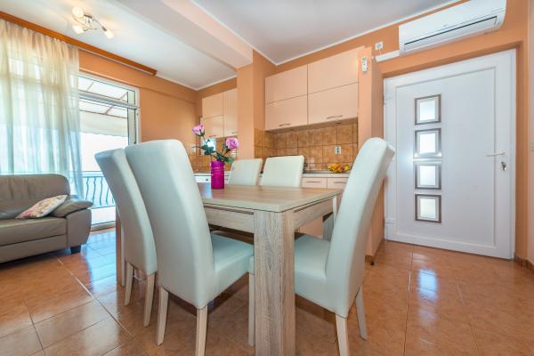 Ein Familienhaus mit drei Wohnungen in einer ruhigen Umgebung eines Pinienwaldes mit Blick auf das kristallklare Meer in 10 Metern Entfernung. Erste Reihe zum Meer. Allen Gästen stehen Parkplätze und die Nutzung eines Außengrills sowie ein Platz zum Ausruhen im Schatten der Pinien zur Verfügung. Jede Wohnung verfügt über einen eigenen Eingang, ist modern ausgestattet (Satellit, WLAN) und verfügt über eine Terrasse mit Blick auf das Meer. Entlang des Meeres erstreckt sich eine 5 km lange Promenade, die zum Laufen, Spazierengehen oder Radfahren geeignet ist, und im Hinterland des Dorfes gibt es Mountainbikewege. Wir befinden uns in der Nähe von zwei Nationalparks: NP Krka und NP Kornati sowie den Städten Šibenik, Trogir und Split, die unter dem Schutz der Unesco stehen. Wir bieten Ihnen einen angenehmen und erholsamen Urlaub in unseren Appartements und freuen uns auf Ihre Ankunft, die Familie Marinov Mirela und Branimir
