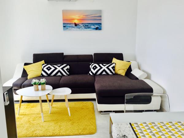 Luxuriöse, brandneue Apartments auf einem Hügel mit wunderschönem Meerblick, privatem Parkplatz, großem Garten mit hochwertigem Swimmingpool mit kristallklarem Wasser und Nachtbeleuchtung. Nur 10 Gehminuten von allen Annehmlichkeiten entfernt: Strände, unzählige Cafés, Geschäfte, Stadtzentrum, und dennoch ungestörte Nachtruhe und Entfernung von Lärm und Menschenmassen. Die Apartments bieten allen Komfort und moderne Annehmlichkeiten sowie geräumige Terrassen mit Sitzmöbeln.