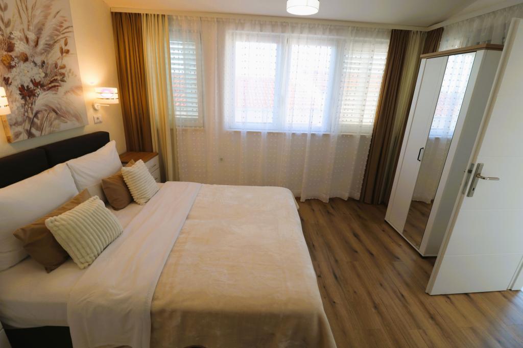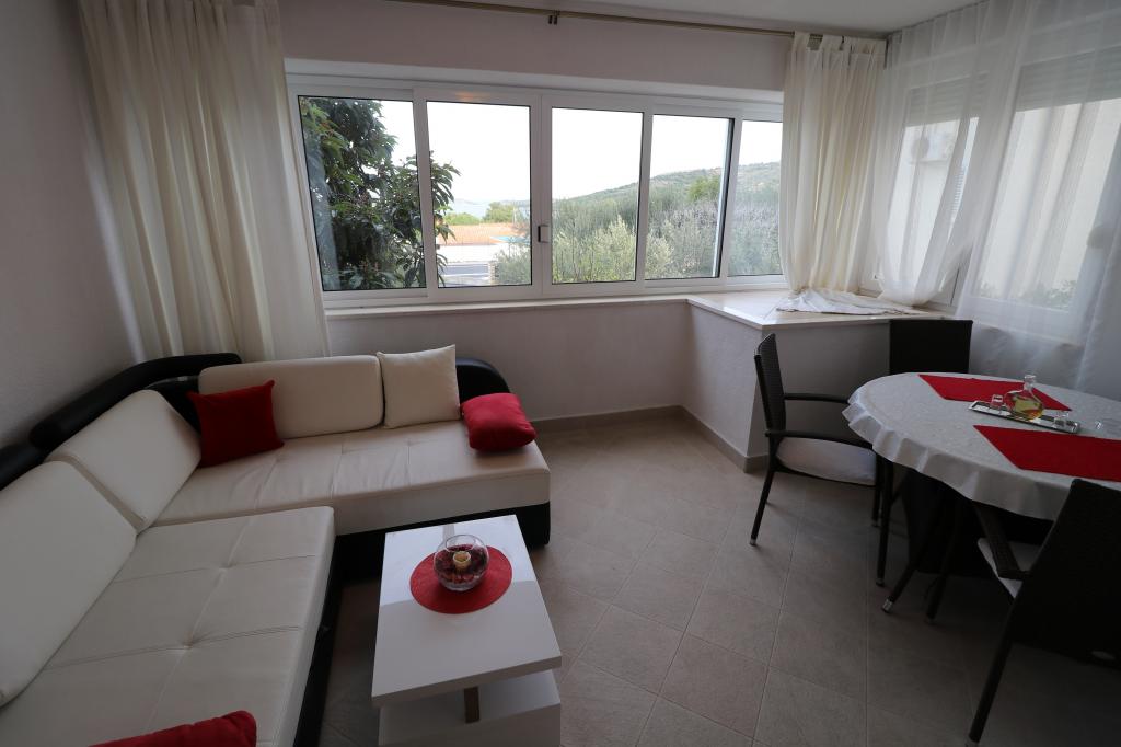 Die Apartments Bilokapić befinden sich in unmittelbarer Nähe des Adria-Autocamps in Primošten, 25 km südlich von Šibenik. Zwei Häuser liegen in einem ruhigen Teil von Primošten, umgeben von viel Grün und mediterraner Flora. Alle Apartments sind klimatisiert und modern eingerichtet. Ihre Balkone bieten einen wunderschönen Blick auf den Archipel von Šibenik. Zum Komfort der Unterkunft trägt der 2400 m² große Garten bei, in dem es einen Swimmingpool, ein Hydromassagebecken, Sonnenliegen, eine Toilette und eine Außendusche, Tischfußball, Tischtennis, Tische und Stühle sowie einen Gartengrill gibt. Der Parkplatz ist größtenteils mit Schatten bedeckt. Die Küste und der Strand sind ca. 100 Meter entfernt. Der Strand ist abwechslungsreich, aus Kieselsteinen in Kombination mit sanften Felsen, mit einem großen Teil im Schatten von Pinien, und unsere Gäste können ihn ohne Aufpreis nutzen. In unmittelbarer Nähe befindet sich ein Supermarkt, ein Restaurant, eine Café-Bar und eine Konditorei. Das Zentrum von Primošten mit seinem reichhaltigen touristischen Angebot ist etwa 3 km entfernt. Nationalpark Krka etwa 40 km und Flughafen Split etwa 45