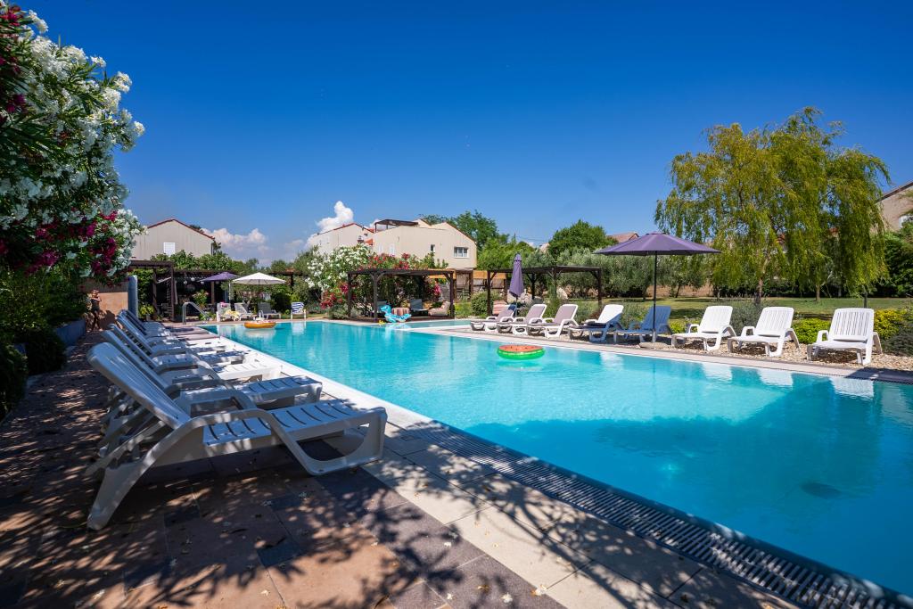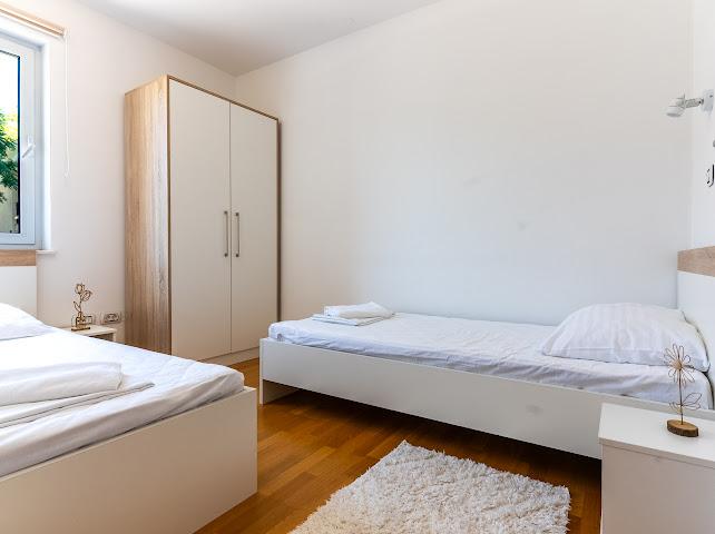 Die Unterkunft My Nest liegt in einem ruhigen Teil von Privlaka (Glavanci), nur 600 m vom ersten Strand und 800 m vom Strand Bilotinjak entfernt, einem der schönsten Sandstrände Dalmatiens. Vor jedem Apartment befindet sich ein privater Parkplatz. Zur Anlage gehören außerdem ein einzigartiger, gemeinschaftlich genutzter Innenhof mit Gemeinschaftsküche, Grillplatz, Terrasse, 100 m² großem Swimmingpool, Sonnenterrasse am Pool, Whirlpool und Sauna, die den Duft eines mediterranen Gartens verströmt. Jedes Apartment verfügt über ein Wohnzimmer, eine voll ausgestattete Küche, zwei Schlafzimmer, ein Badezimmer sowie eine Terrasse oder einen Balkon. Zadar erreichen Sie nach nur 12 km und die historische Stadt Nin nach nur 3 km. Unsere Lage ist ideal für Ausflüge zu den Kornati-Inseln, dem Krka-Nationalpark, dem Nationalpark Plitvicer Seen, Pag, Ugljan und vielen weiteren Sehenswürdigkeiten. Genießen Sie dabei die Ruhe und den Charme einer authentischen dalmatinischen Stadt.