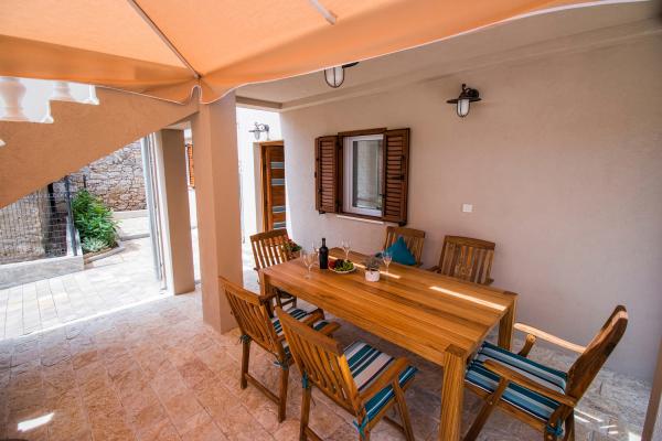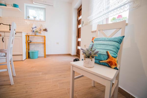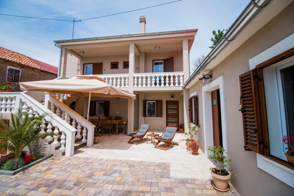 Personen: 6 2; Schlafzimmer: 3; Badezimmer: 3; Das Haus ist in seiner Gesamtheit vermietet, ideal für einen Familienurlaub und Entspannung. Es befindet sich in einem alten und ruhigen Teil von Privlaka, mit Blick auf das Meer. Die Strände sind lang und sandig mit warmen Meer. Das Haus ist gut und luxuriös eingerichtet. Im Erdgeschoss befindet sich eine Küche, Wohnzimmer mit Schlafcouch für 2 Personen, Esszimmer, Schlafzimmer und Bad mit Whirlpool und eine große Terrasse. Im Obergeschoss befinden sich zwei Schlafzimmer. Jedes Zimmer verfügt über eine Klimaanlage, Bad, Smart-TV und eine Terrasse mit Meerblick. Es ist geeignet für einen Urlaub außerhalb der Sommermonate, da es eine Fußbodenheizung verfügt. Das Haus verfügt über kostenfreies WLAN und Sat-TV.