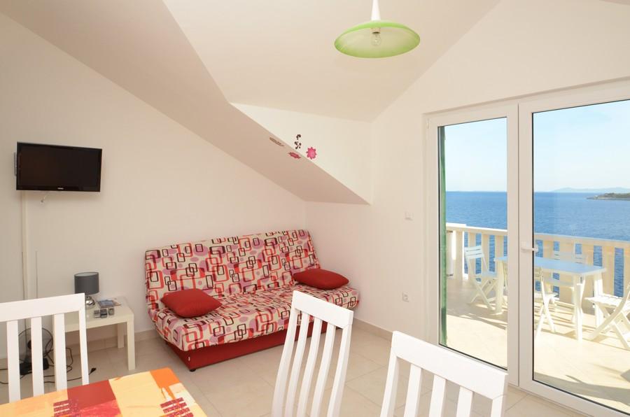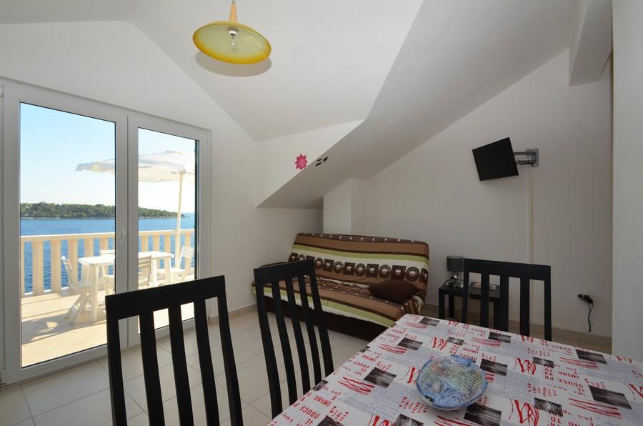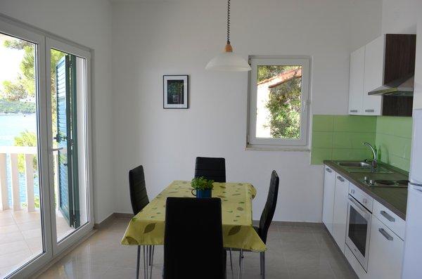 Das Haus liegt am Meer an einem ruhigen Ort. Die Wohnungen sind neu und gut ausgestattet. Vor dem Haus befindet sich ein großer Parkplatz, kostenlos und gemütlich für alle unsere Gäste. Jedes Apartment verfügt über eine eigene Terrasse mit Blick auf das Meer und die kleinen Inseln. In der Nähe befinden sich zwei Privatstrände mit kostenlosen Sonnenschirmen und Liegestühlen, eine Tauchschule, eine Segelschule, ein Bootsverleih, ein Moped, ein Kanu, verschiedene Restaurants sowie schöne Wander- und Radwege.