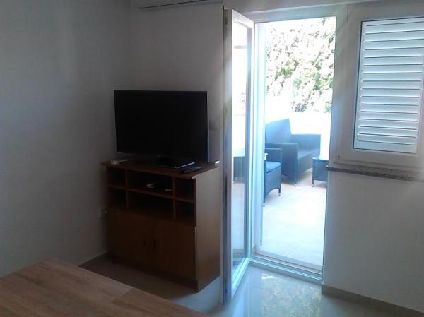 Punat Appartements für 4 oder 5 Personen KRK-Haus mit zwei Wohnungen in der Mitte. Wohnung im Erdgeschoss: Küche, Ess- und Wohnzimmer und Badezimmer (mit Badewanne), Schlafzimmer mit Doppelbett. Große Terrasse. Das Wohnzimmer verfügt über ein Schlafsofa. Für 4 Personen. Wohnung im oberen Stockwerk: Küche mit Essbereich und Wohnzimmer, Schlafzimmer mit Doppelbett und Einzelbett, Badezimmer (Dusche Zimmer mit Bad), Balkon - Terrasse von 10 m2, kleinem Balkon von 2 m2. Das Wohnzimmer verfügt über ein Schlafsofa. Für 5 Personen. Parkplatz für 3 Autos, Möglichkeit Garage Fahrräder. Gemeinsamer Grill im Erdgeschoss. Das Haus wurde im Jahr 2015 komplett restauriert. Es ist alles neu. Beginnend von Bauteilen bis hin zu Möbeln. Gartenhaus im Garten Ihr Fahrrad oder ähnliches Gerät zu speichern.