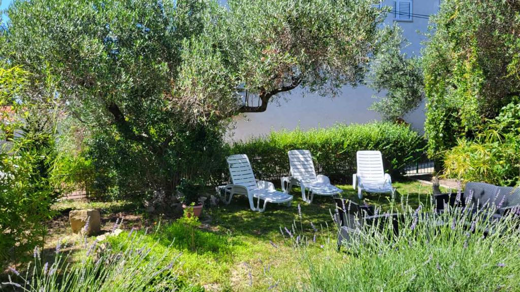 Die Apartments Padova 2 liegen in einem ruhigen Teil der Insel in der Nähe des Strandes Padova II, umgeben von einem Garten und viel Grün mit Zierpflanzen. Sie sind mit allem ausgestattet, was Sie für einen angenehmen und unbeschwerten Urlaub benötigen. Geschirrspüler, Waschmaschine, Mikrowelle, Wasserkocher, Toaster, Satellitenprogramme, WIFI... Die Apartments befinden sich im Erdgeschoss und verfügen über eine Terrasse und einen Garten, der zum Entspannen im Schatten von Olivenbäumen einlädt. Auf der Terrasse steht den Gästen ein Grill zur Verfügung. Der Strand ist 50 Meter entfernt und entlang der schönen Promenade am Meer ist die Altstadt von Rab in 20 Minuten zu erreichen. Für Liebhaber von Bootsfahrten gibt es in unmittelbarer Nähe ein Taxiboot. Das Parken befindet sich neben den Apartments und ist kostenlos.