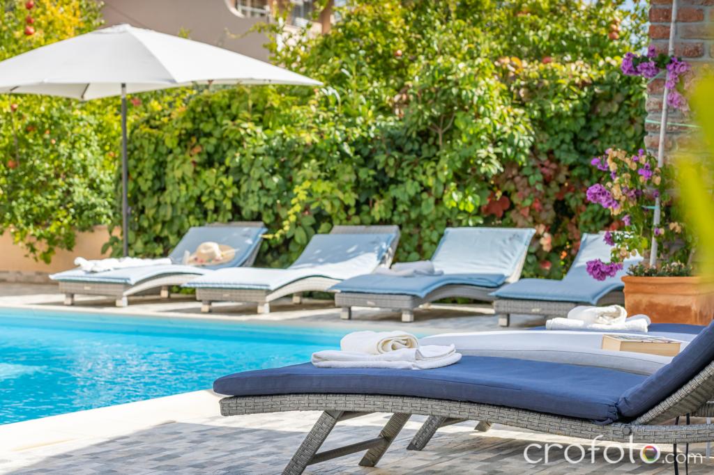 Ein obligatorisches Begrüßungsgetränk erwartet Sie. Ein wunderschöner, regelmäßig gepflegter Swimmingpool, umgeben von luxuriösen Sitzgelegenheiten, bequemen Liegestühlen und Sonnenschirmen, inmitten von Grün – eine Oase der Ruhe zum Entspannen. Ein großer Tisch mit Grillmöglichkeit im Gartenpavillon lädt zum geselligen Beisammensein ein und bietet zusätzliche Annehmlichkeiten. Gesicherte Parkplätze stehen zur Verfügung.
