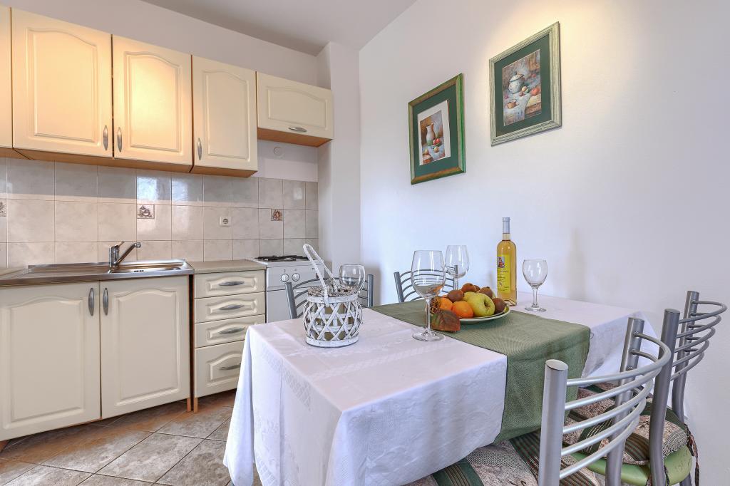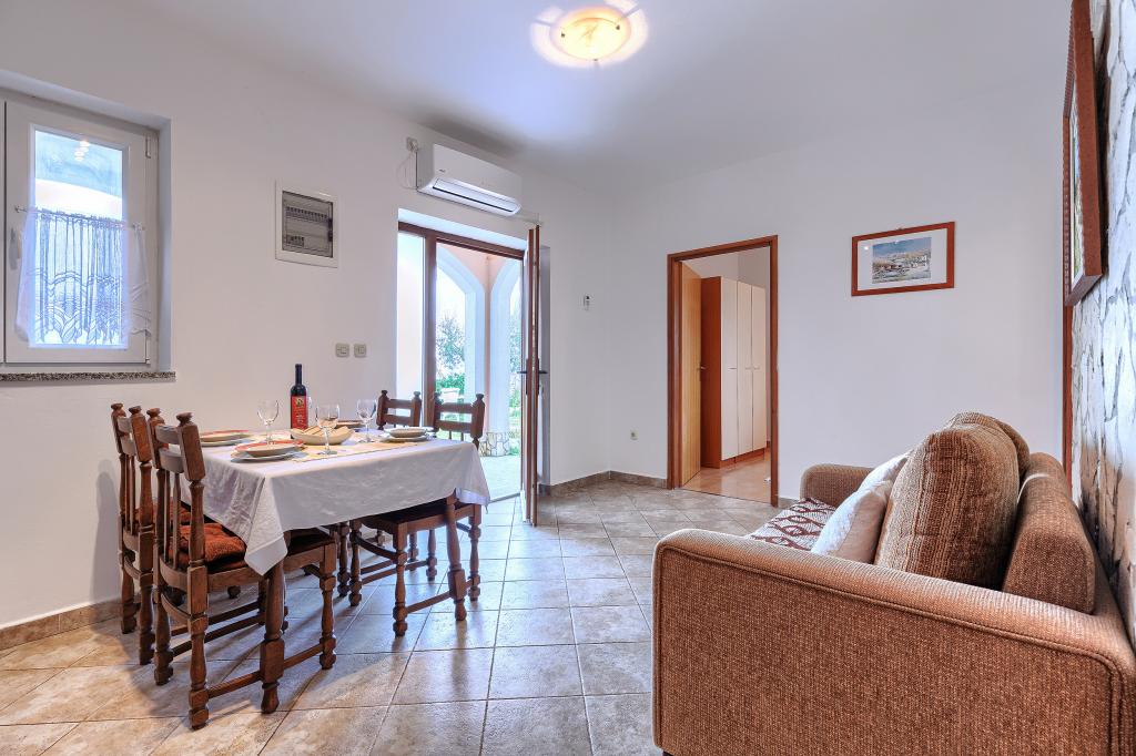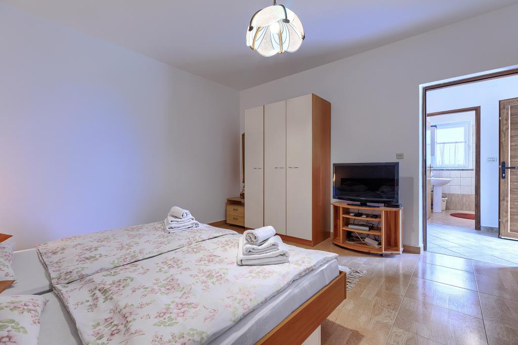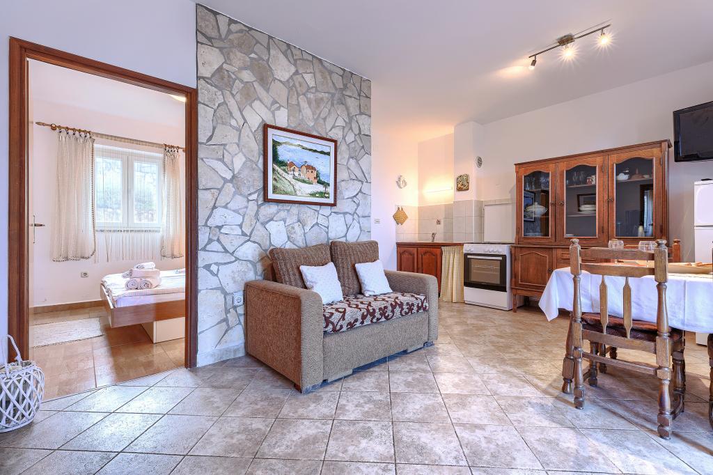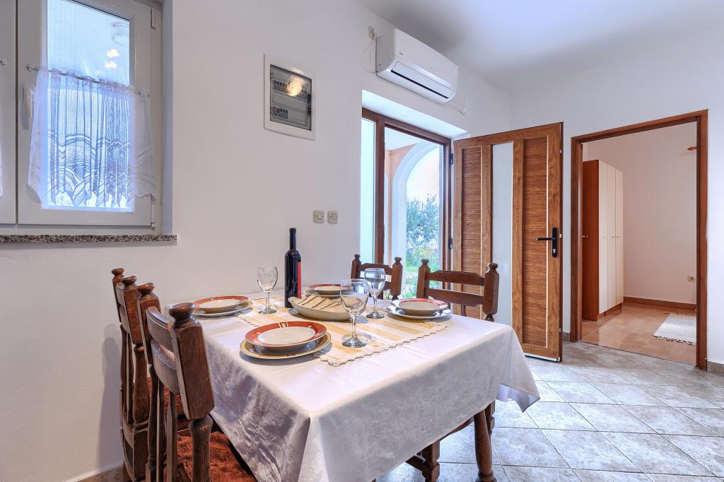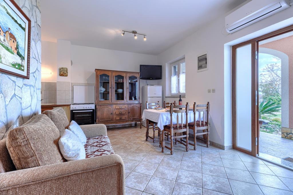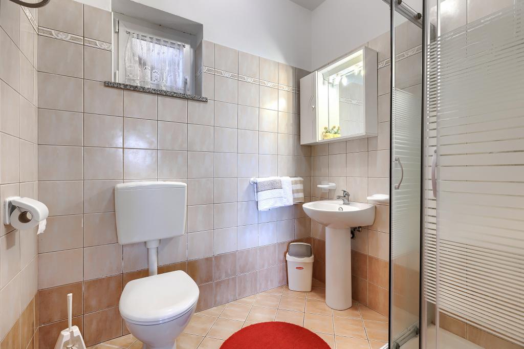 Haus mit mehreren Apartments in der Siedlung Drenje. Nur 5 Autominuten vom Strand und 15 Minuten von Labin entfernt. Die Apartments befinden sich im Erdgeschoss und bieten absolute Privatsphäre sowie die Möglichkeit zur Entspannung und Erholung. Ein Apartment ist 42 m² groß und verfügt über ein Schlafzimmer mit Doppelbett und der Möglichkeit, ein Zustellbett zu nutzen. Es bietet außerdem ein Wohnzimmer mit Essbereich, eine voll ausgestattete Küche, eine Terrasse mit Meerblick und ein Badezimmer. Das zweite Apartment ist 56 m² groß und bietet zwei Schlafzimmer mit je einem Doppelbett, ein Wohnzimmer mit Essbereich, eine voll ausgestattete Küche, eine Terrasse mit Meerblick und ein Badezimmer. Das nächste Restaurant und der nächste Supermarkt sind jeweils 5 Autominuten entfernt. Die Apartments liegen in ruhiger Lage inmitten einer schönen Natur – alles, was Sie für einen perfekten Urlaub brauchen!
