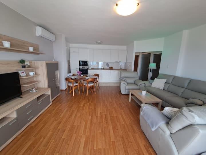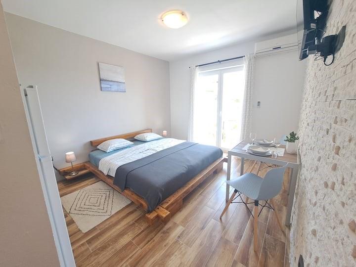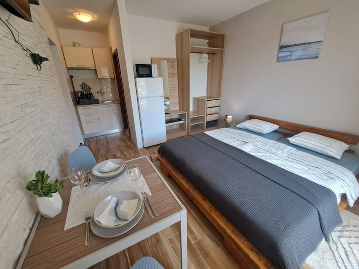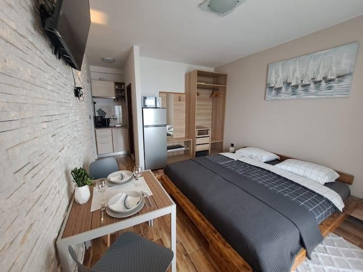 Möblierte Apartments, Bettwäsche und Handtücher sind im Buchungspreis inbegriffen. Kostenloser Parkplatz 50 m von der Unterkunft entfernt. Kostenlose Nutzung des Grills möglich.