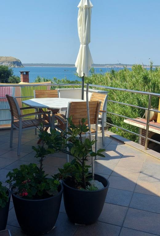 Gut ausgestattete Apartments im ersten Stock des Hauses. Ideal für einen ruhigen Familienurlaub. Der Naturstrand und das Meer sind nur 50 Meter von der Wohnung entfernt. Ruhige Straße ohne Verkehr. Der Parkplatz befindet sich im umzäunten Hof des Hauses. Die Möglichkeit, einen Grill und eine Außendusche zu nutzen.