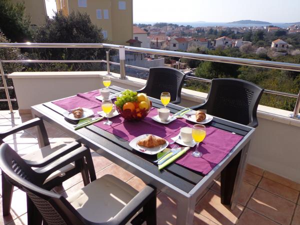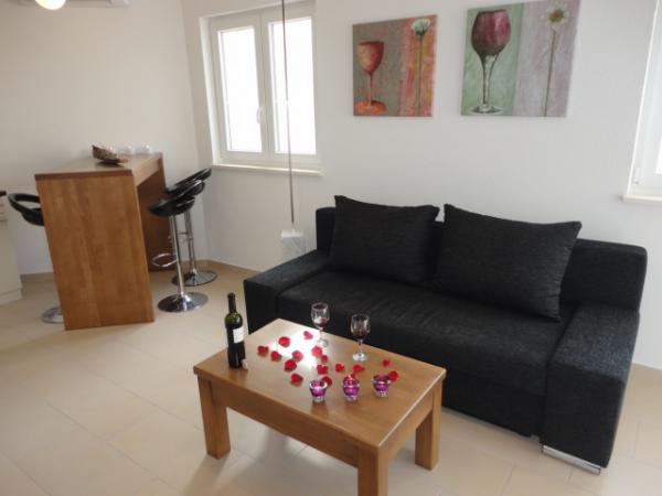 Moderne Wohnung in einem ruhigen Teil von Rogoznica ist eine gute Wahl, wenn Sie möchten Ihren Urlaub in einer kleinen Stadt in Zentral-Dalmatien zu verbringen. Die Wohnung befindet sich nur 5 Gehminuten vom Stadtzentrum und dem Meer entfernt und 10 Minuten vom Strand entfernt. Das Hotel liegt in einer ruhigen Umgebung. Es hat eine schöne Terrasse, die herrliche Aussicht auf das Meer bietet. Die Aufgabe wird gestattet, Haustiere bleiben. Es ist ein Parkplatz ist kostenlos und Buchung ist nicht erforderlich.