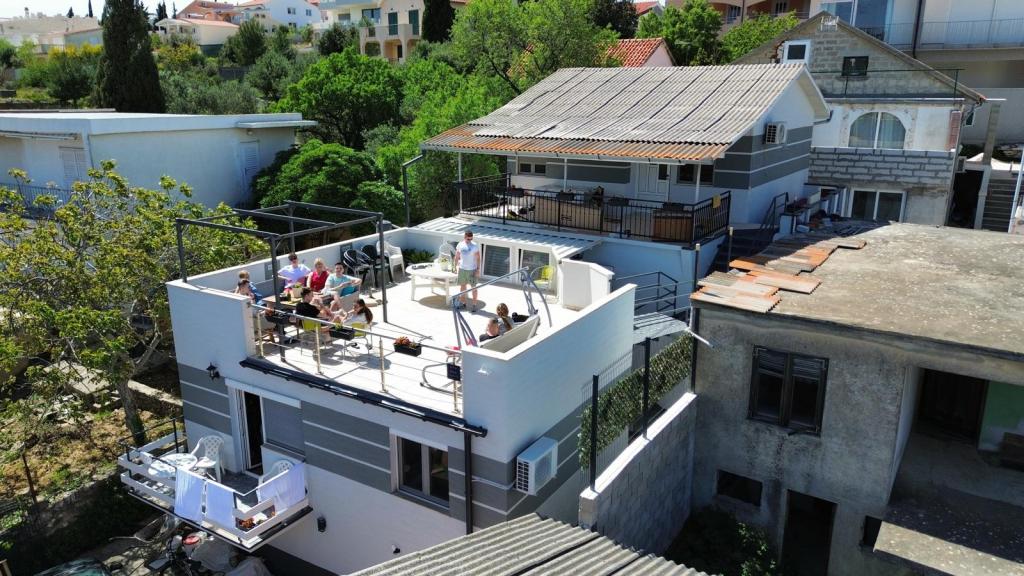 Ein geräumiges Ferienhaus für bis zu 16 Personen, ideal für größere Familien oder Freundesgruppen, die einen Urlaub am Meer verbringen möchten. Den Gästen steht eine 50 m² große Terrasse mit herrlichem Meerblick zur Verfügung – perfekt für gesellige Runden, Mahlzeiten im Freien und um die Sonnenuntergänge zu genießen. Ein Gasgrill lädt zum Zubereiten köstlicher Speisen in entspannter Atmosphäre ein. Vor dem Haus befinden sich Parkplätze für 5 Autos, und 5 Fahrräder stehen den Gästen zur Verfügung, um die Umgebung zu erkunden und gemütliche Radtouren am Meer zu unternehmen. Das Haus liegt in exzellenter Lage, nur 150 m vom Meer und Strand entfernt, umgeben von viel Grün und natürlichem Schatten. Es bietet die perfekte Kombination aus Komfort, Privatsphäre und der Nähe zu allen Annehmlichkeiten für einen unvergesslichen Urlaub.