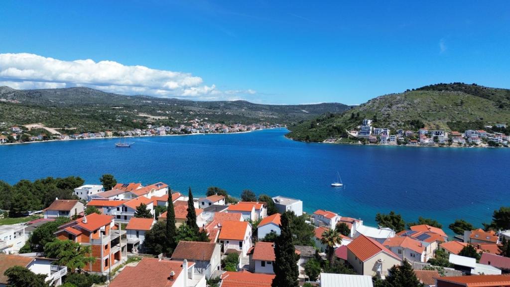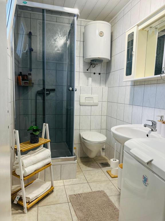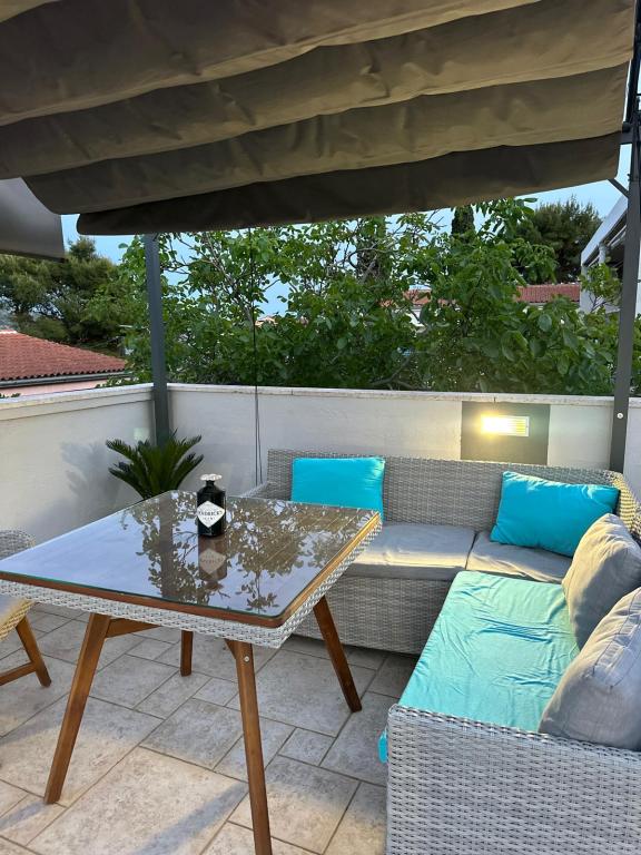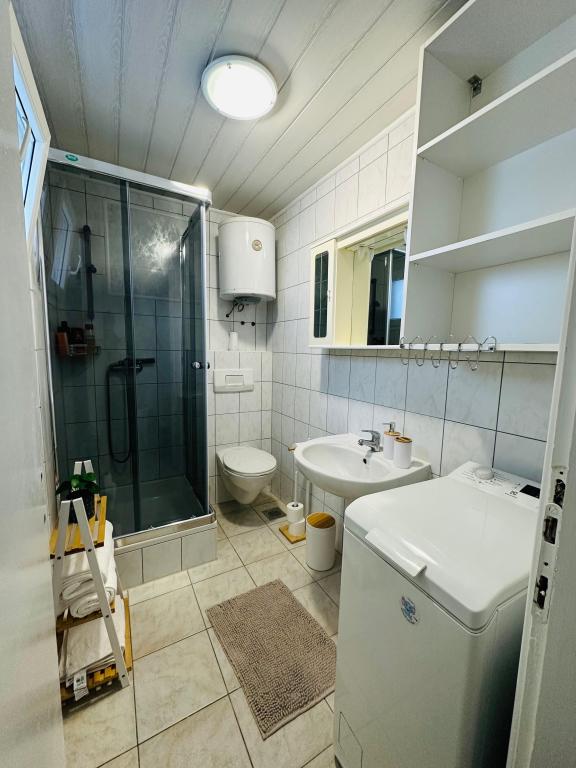 Die Apartments liegen nur 150 m vom Meer und Strand entfernt, eingebettet in eine angenehme, naturnahe Umgebung mit vielen Bäumen, die natürlichen Schatten spenden und an heißen Sommertagen ein ideales Ambiente zum Entspannen schaffen. Direkt am Strand befindet sich eine Dusche, und gleich daneben lädt ein Café zum morgendlichen Kaffee oder einem erfrischenden Getränk am Meer ein. Der Supermarkt Tommy ist in nur 12 Minuten gemütlich am Meer entlang zu Fuß erreichbar – die Lage ist somit perfekt für einen unbeschwerten und angenehmen Urlaub.