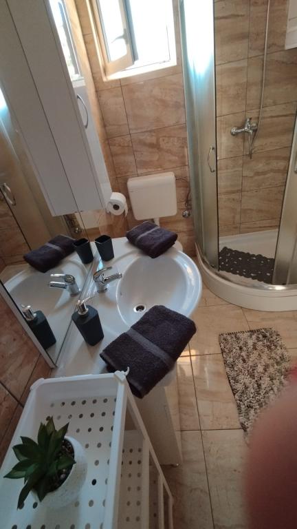 Wir verbrachten 12 Tage in der Fiso-Wohnung mit einer anderen Familie und vor allem unserem pelzigen Mitglied, denn ohne Hund geht es nirgendwo. Alles war großartig, die Wohnung befindet sich im Erdgeschoss, es gibt Grünflächen rund um das Haus und eine große Terrasse für abendliche Zusammenkünfte, und der Hund kann in unserer Nähe sein. Der Ort ist klein und es gibt keine Touristen, die am Strand über Ihren Kopf laufen oder schreien, was großartig ist, wenn Sie sich entspannen möchten. Vielleicht fehlt im Laden etwas, aber das meiste haben wir trotzdem mitgebracht. Die Lage ist großartig, da Sie in kürzester Zeit in den umliegenden Städten wie Primošten und Trogir sein können. Und noch ein Tipp für unsere lieben Gastgeber. Schaut euch die Anzeige an, denn es gibt noch viel mehr zu entdecken. Der Typ hat eine Mikrowelle und einen Geschirrspüler. Ich schlage vor, einen Plastikbehälter im Badezimmer aufzustellen, damit ihr die Wäsche vor dem Trocknen rausnehmen könnt. Nochmals vielen herzlichen Dank.