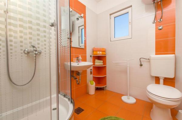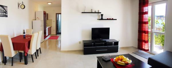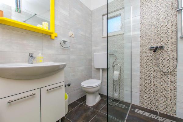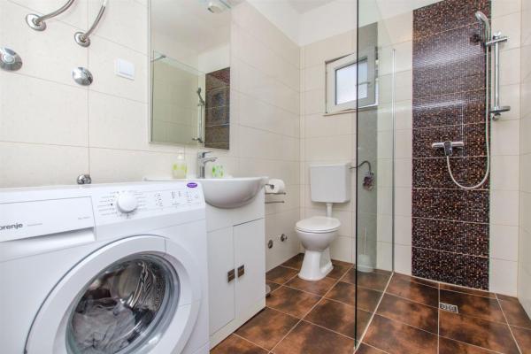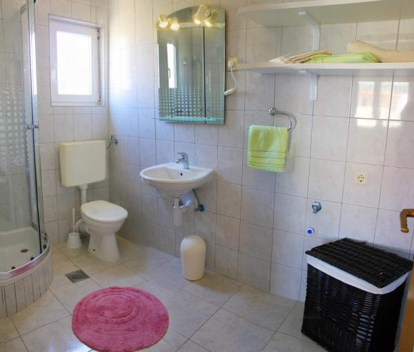 Wohnungen Jasminka liegt in dem kleinen Fischerdorf Rogoznica, die ideal für Familienurlaub ist. Das Hotel liegt in einer ruhigen Bucht, nur 50 Meter vom Strand entfernt, die Wohnungen haben schöne Aussicht auf die Altstadt. Durch den ganzen Ort führt eine Promenade, die eine bessere Kenntnis der Orte ermöglicht. AP. JASMINKA besteht aus drei Wohnungen. AP1 (6 3), die auch die größte, mit einer Fläche von 120m² 3 Schlafzimmer, jedes Schlafzimmer hat ein eigenes Bad mit Dusche, Küche, großen Wohnzimmer mit einem großen Tisch auf dem Mittagessen für Ihre Familie und Freunde zu dienen. Die große Terrasse, die sich über das gesamte Haus erstreckt. AP2 (4 1) neu Wohnung im ersten Stock, mit 2 Zimmern mit einem Doppelbett und ein gemeinsamen Bad mit Dusche, neuer Küche, Schlafsofa im Wohnzimmer, große Terrasse eingerichtet. AP3 (4 2) Eine wunderbare Unterkunft für Ihre Familie. 2 Schlafzimmer mit Bad, Küche, Wohnzimmer, Terrasse. Alle drei smiještajne Einheiten haben einen gemeinsamen Hof, Parkplatz, Garten und Außenkamin.