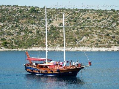Kanica Wohnungen befinden sich in einem kleinen Dorf Kanica, in der Nähe der Stadt Rogoznica, Primosten und touristischen Zentrum von Sibenik. Kanica Bay gilt als einer der schönsten an der Adria. Sauberes Meer und Abstand vom alltäglichen Lärm Kanica ist ein idealer Ort für einen ruhigen Urlaub. Apartments Kanica sind nur 5 m vom Meer, Privatstrand. Die Wohnung im Erdgeschoss mit Küche und Essbereich, Bad und WC. Auf der ersten Etage befinden sich 2 Wohnungen, jeweils mit Küche, Bad und Terrasse mit Blick auf das Meer. Die Küchen sind komplett ausgestattet (Mikrowelle, Kühlschrank, Gefrierschrank, Geschirr und Besteck).