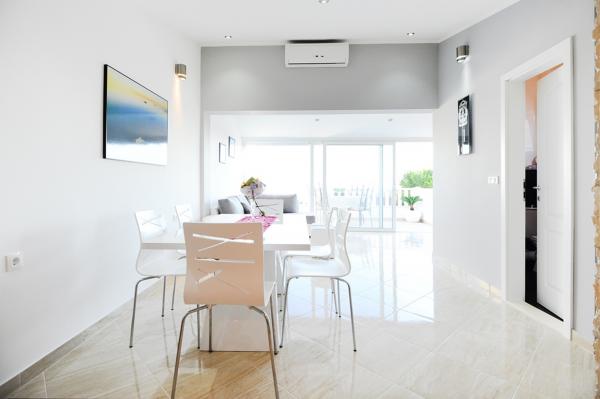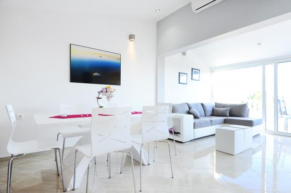 Zwei neue Wohnungen in einem ruhigen Teil von Rogoznica, bietet alles, was Sie für eine vollständige Erholung und Entspannung, Ruhe, Abstand vom Lärm der Stadt, privaten Ort am Strand mit Liegen und Sonnenschirmen, die Möglichkeit, ein Boot zu erkunden und besichtigen Sie die umliegenden Inseln zu mieten. .. Blick von der Terrasse den ganzen Weg bis zum Leuchtturm Mulo und die umliegenden Inseln der Nähe liegt das Zentrum von Rogoznica, nur 7 Minuten fahren, haben Sie die Gelegenheit, die Stadt von Primosten zu besuchen. Wir freuen uns auf Sie!