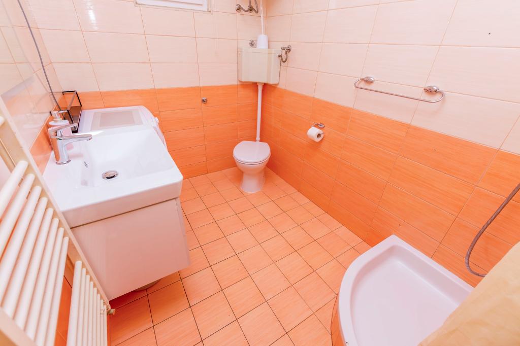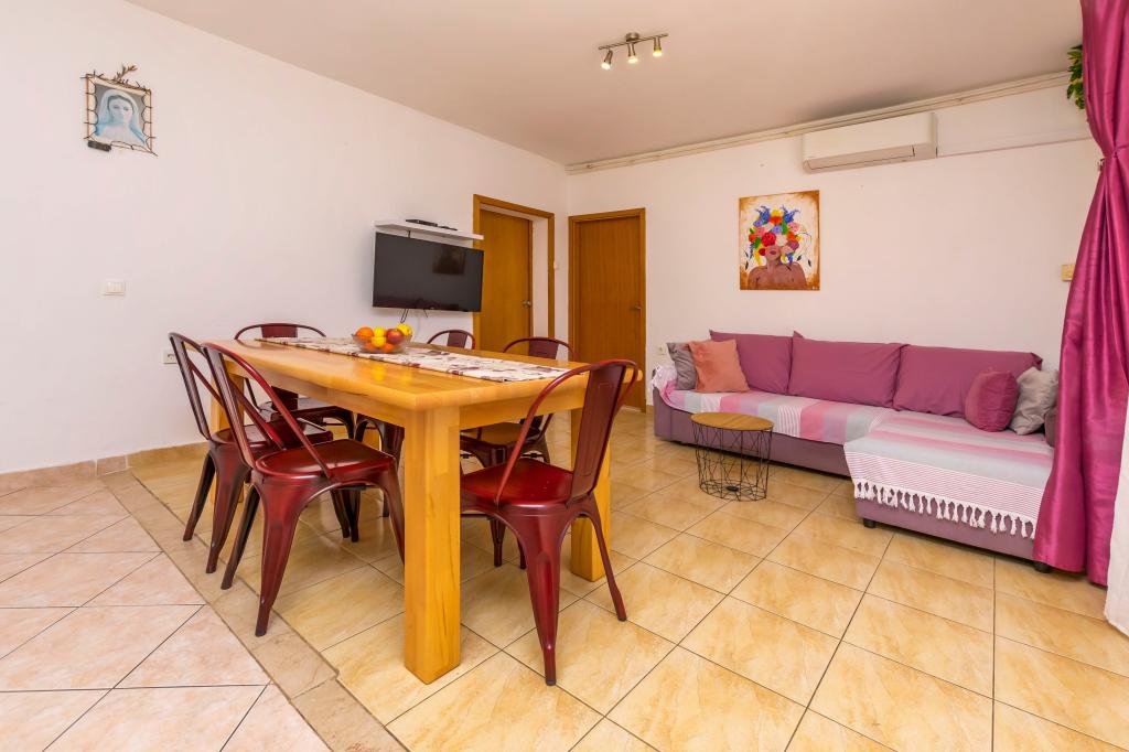 Möblierte Wohnungen mit 3 Sternen. Wohnung A- 8 1, Erdgeschoss, behindertengerecht. Kinderwagen, große Terrasse, 3 Klimaanlagen, 2 Toiletten, Strand, 40 m entfernt, für Kinder geeignet, großer Garten, Grill, Dusche im Freien, sonnengeschützter Parkplatz. Schöne Promenade am Meer, von der Wohnung bis zum Zentrum (ca. 2000m). . Haustiere nach Absprache. Für unsere Touristen betreiben wir einen Transferflughafen Split - Rogoznica. Ausgebaute Radwege, ca. 100 km. Ruhe, mildes Klima, Sonne, ein Spaziergang am Meer, Erholung für Körper und Seele. Liebe Freunde, wir sind das nächste warme Meer, willkommen! Apartment A9, 1 Etage, großer Balkon, schöner Meerblick, 2 kleinere Balkone, 3 Klimaanlagen, 3 Toiletten, Grill, Parkplatz. Willkommen bei uns!