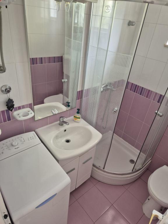 Rogoznica liegt in der Gespanschaft Šibenik-Knin, 32 Kilometer von Šibenik und 60 Kilometer von Split entfernt. Der bewohnte Teil der Küste ist eine der sichersten und geschütztesten Buchten an der Adria. Rogoznica, ein ruhiger mediterraner Ort im Herzen Dalmatiens, ist ein idealer Ort für einen Urlaub mit Familie und Freunden. Jedes der 3 Apartments verfügt über: eine Küche, die für die tägliche Zubereitung aller Arten von Mahlzeiten ausgestattet ist, 2 Schlafzimmer, eine Toilette und eine Terrasse. Klimaanlage im Preis inbegriffen. Wir sind 40 Meter vom Meer entfernt. Wir haben einen eigenen Parkplatz.