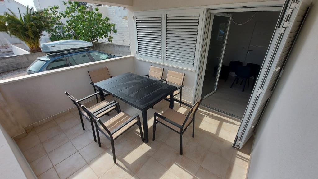 Komplette und moderne, neu ausgestattete Wohnung in ruhiger Lage, gedacht für diejenigen, die einen Familienurlaub verbringen möchten. Das Gebäude liegt etwa 20 Meter vom Meer und dem Strand entfernt. Es verfügt über einen direkten Zugang zum Strand Šepurine, der über alle dazugehörigen Einrichtungen verfügt (Cafés, Fast Food, Verleih von Liegestühlen, SUPs, Tretbooten, Kinderspielplatz, Aquapark...). Die Wohnung besteht aus zwei Schlafzimmern (eines mit einem Doppelbett 180 cm und das andere mit zwei getrennten Betten), Wohnzimmer (Klappsofa + Smart-TV), Küche (Geschirrspüler, Backofen, Kühlschrank mit Gefrierfach, Herd mit Dunstabzugshaube, Mikrowelle), Esszimmer (Tisch + 6 Stühle), Badezimmer (Waschbecken, Toilette, Dusche, Waschmaschine), separates WC und Terrasse (Tisch + 6 Stühle). Die Wohnung ist klimatisiert, verfügt über WLAN und einen gesicherten Parkplatz. Besonderer Vorteil für Rentner: Es gibt keine einzige Stufe am Eingang zur Wohnung (Rampe für Kinderwagen außen). Die Dusche ist bodengleich, alle Betten sind hoch (bequeme Nutzung) und der Strand verfügt über eine Rampe für einen einfachen Zugang zum Meer!
