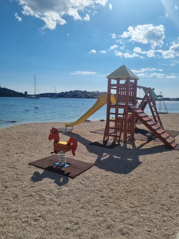 Schön eingerichtete Wohnung in ruhiger Bucht, nur 50 Meter oder 3 Gehminuten vom Strand entfernt. Eine betonierte Strandpromenade führt direkt ins Stadtzentrum.