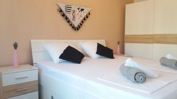 Rovanjska ist ein ruhiger touristischer Ort perfekt für Erholung und Entspannung. Es befindet sich am Fuße des Velebit und schön mit klaren, blauen Novigrad Meer. Die Apartments sind 200 m vom Strand entfernt, 28 km vom Flughafen entfernt. Modric Cave Cave-Reichtum ist am Fuß des Velebit und die Kirche von St .. George im Ort ist ein Juwel der Architektur. In der Nähe befindet sich der Nationalpark Paklenica 8 km, Nationalpark Plitvicer Seen 95 km, Nationalpark Krka in einer Entfernung 85 km. Von der Terrasse aus hat man einen schönen Sonnenuntergang sehen.