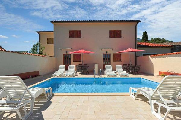 Das neu gebaute Ferienhaus liegt in Rovinj, legen von Rovinj ca. entfernt 6 km. Das Haus wurde 2014 Jahre gebaut und ist komplett mit neuen Möbeln und neuen Geräten ausgestattet. Das Haus ist auf 2 Etagen. Das Erdgeschoss verfügt über zwei Küchen, Esszimmer, zwei Wohnzimmer und zwei Badezimmer. Die Terrasse ist für jede Person mit hochwertigen Gartenmöbeln und Liegestühlen ausgestattet. Im Obergeschoss befinden sich vier mit ausgezeichneter Klimaanlage und 2 Badezimmern ausgestattet Schlafzimmer. Die Gäste können einen überdachten Parkplatz nutzen. Der Pool hat Abmessungen von 4x6 m, eine Tiefe von 1, 35 m. Bei jeder Person Chaise zur Verfügung. Die Gäste können das drahtlose Internet nutzen. Es gibt zwei Wohnungen, die nicht intern verbunden sind, als durch den Haupteingang und Terrasse möglich ist. Ideal für eine Gruppe oder für zwei Familien.
