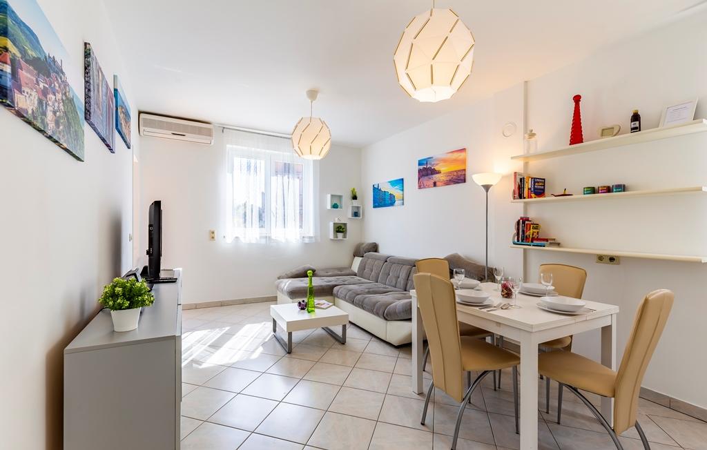Modern eingerichtetes Apartment in einem ruhigen Teil von Rovinj, nur 500 m vom Strand und 1500 m vom Stadtzentrum entfernt. Die Wohnung verfügt über kostenfreies Internet, Klimaanlage, Terrasse und einen privaten Parkplatz.