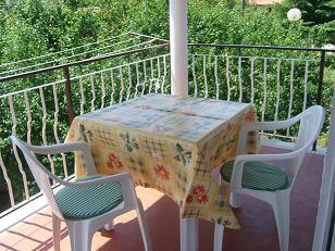 Die Wohnung befindet sich im ersten Stock des Hauses. Es besteht aus zwei Schlafzimmern, Küche, Esszimmer, Bad und zwei Terrassen. Der Eigentümer wohnt im Erdgeschoss. Das Parken ist in einem umzäunten Hof.
