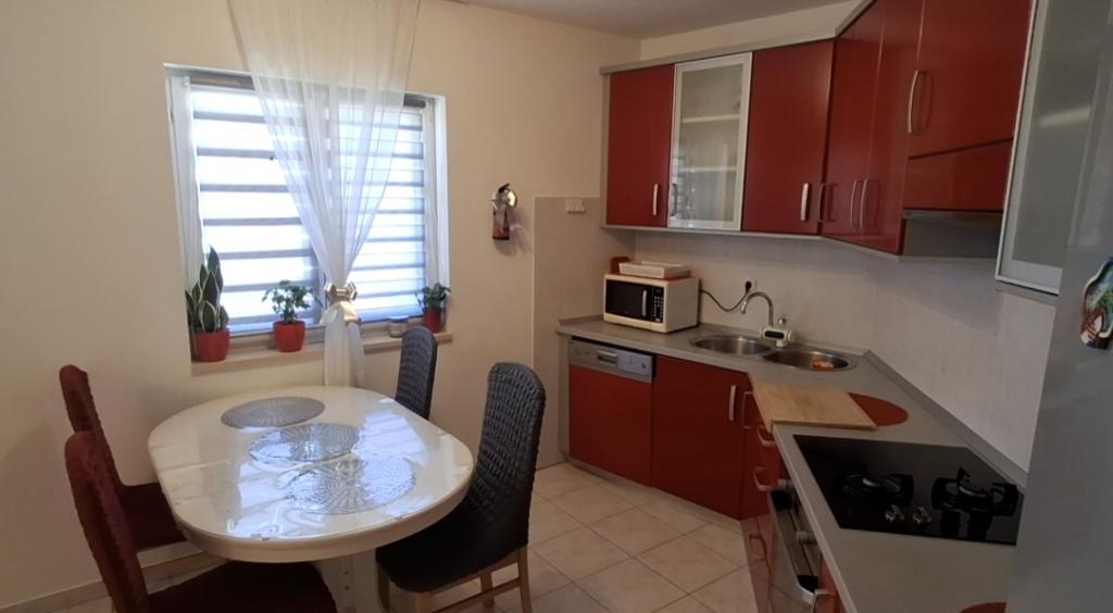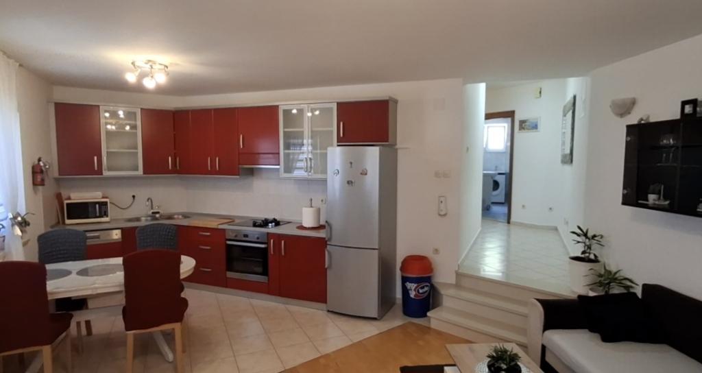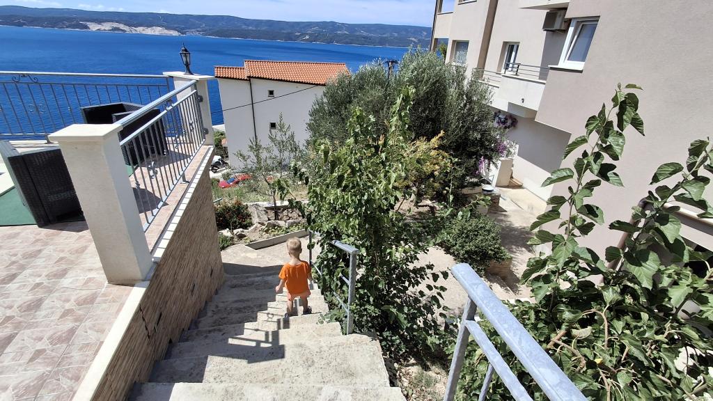 Apartment zu empfehlen, alles wie beschrieben (Geschirrspüler, Backofen, großer Kühlschrank, Bidet). Herrlichem Meerblick vom Balkon und die Küche. In einem Schlafzimmer gibt es einen zusätzlichen Balkon mit Meerblick, und im anderen Fenster mit Blick auf die schönen Berge. Auf dem Grundstück befinden sich ein Pool mit herrlichem Blick auf das Meer und die Berge. Der nahe gelegene Strand (Erdgeschoss) ist sehr intim, gab es nicht eine Menge Leute - ein kleiner Strand Kieselsteine und viele Orte, steinigen / Beton und, was wichtig ist schattig. Sehr nette Gastgeber (Ivo begrüßen Sie und Ihre Familie) - hilfsbereit und höflich. Eines Tages brachte er uns warme Kekse mit Füllung.