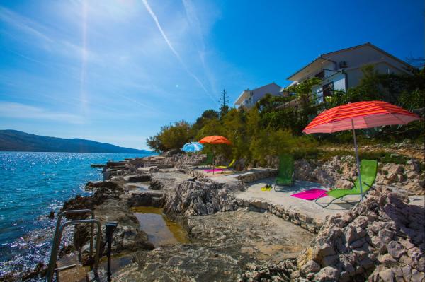 Bei Brugi können Sie sich wie zu Hause fühlen. Die Atmosphäre und Ausstattung reichen aus, um sich zu entspannen und auszuruhen. Alles ist einfach, ordentlich und neu ausgestattet. Das Apartment Brugi A6 ist ideal für eine vierköpfige Familie, da es über zwei Doppelzimmer verfügt und sechs Gäste ungestört bleiben, da das Schlafsofa im Wohnzimmer mit der Terrasse verbunden ist, auf der sich ein Gartentisch mit Stühlen und Grill befindet, um Kontakte zu knüpfen und sich zu entspannen. Auf der Terrasse befinden sich Liegestühle, von denen Sie einen freien Blick auf das Meer und die Inseln sowie Sonnenaufgänge und Sonnenuntergänge genießen können. Es gibt auch eine Garage, die für ein Auto ausgelegt ist. Das Apartment A3 verfügt über ein Schlafzimmer mit Doppelbett und ein Schlafsofa im Wohnbereich, das mit der Küche verbunden ist. Es bietet die Möglichkeit, 3 Gäste zu bleiben. Der Grill befindet sich im unteren Teil des Hauses. Die Gäste haben die Möglichkeit, ihr Auto auf dem Hof zu parken. Es kann auch als Ganzes gemietet werden. Wenn Sie eine große Familie oder Firma haben, besteht die Möglichkeit, beide Wohnungen zu mieten. Alles in allem das Beste !!