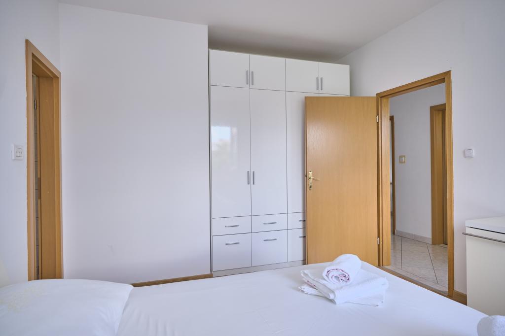 Apartments M ist in der kleinen Küstenstadt Seget Vranjica. 5 km entfernt von gut bekannt ist, geschützt von der UNESCO Stadt Trogir und 7 km vom Flughafen entfernt. Umgeben von Trogir und Seget Vranjica sind von üppiger Vegetation, Olivenhainen, zahlreiche Inseln und Inselchen, Fels- und Sandstränden. Frieden, Ruhe und Gastfreundschaft sind die Hauptmerkmale dieser Stadt. Apartments M verfügt über 4 Wohnungen. Ein Doppelzimmer, ein mit Zustellbett, ein Appartement mit vier Betten und eine große Wohnung mit einer Kapazität bis zu 6 Personen. Jede Wohnung verfügt über eine eigene Küche, Bad und WC, Esszimmer und Balkon mit Meerblick. Alle Wohnungen sind klimatisiert und mit TV entfernteren mit digitalem ausgestattet. Sat-TV und Wi - Fi Internet. Für alle Gäste Parkplatz. Der Strand ist nur 30 m. Ein Teil des Strandes ideal zum Sonnenbaden ist. Das Meer ist kristallklar und der Boden ist aus Stein und Kies.
